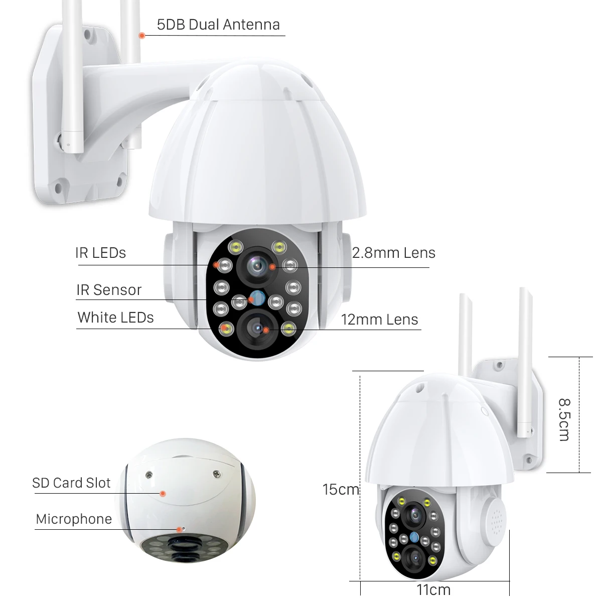 Support Pan 330 degree/ Tilt 90 degree And 3.6mm 3.5X digital Zoom, 12mm 2.5X digital Zoom