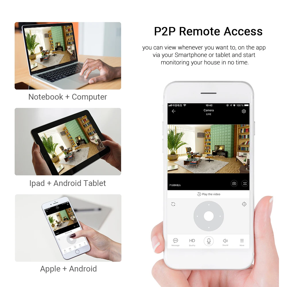 Support Android/ios mobile phone,table,computer.No matter where you are,you can view the live anytime.
