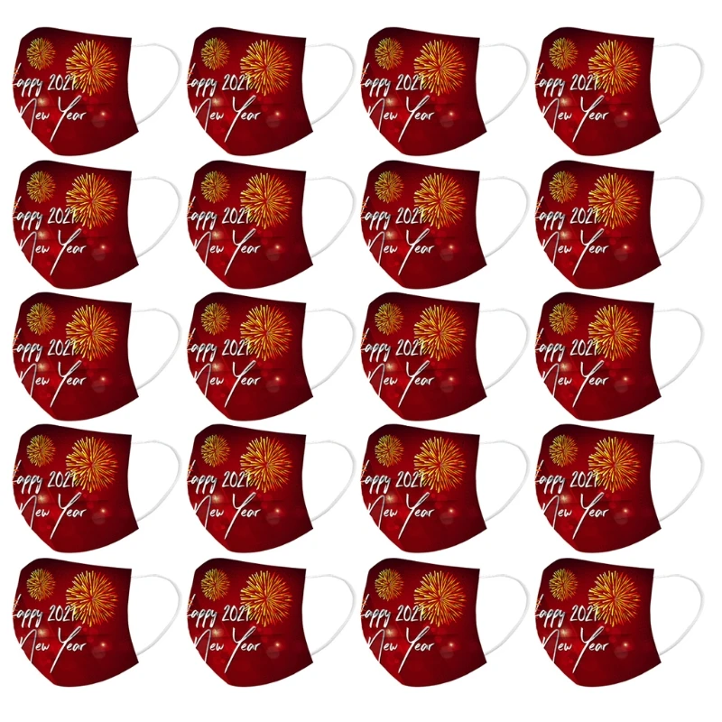 2021 с надписью на Новый год и красочной 3d-цифровой печатью фейерверков, одноразовая маска, удобная и дышащая.