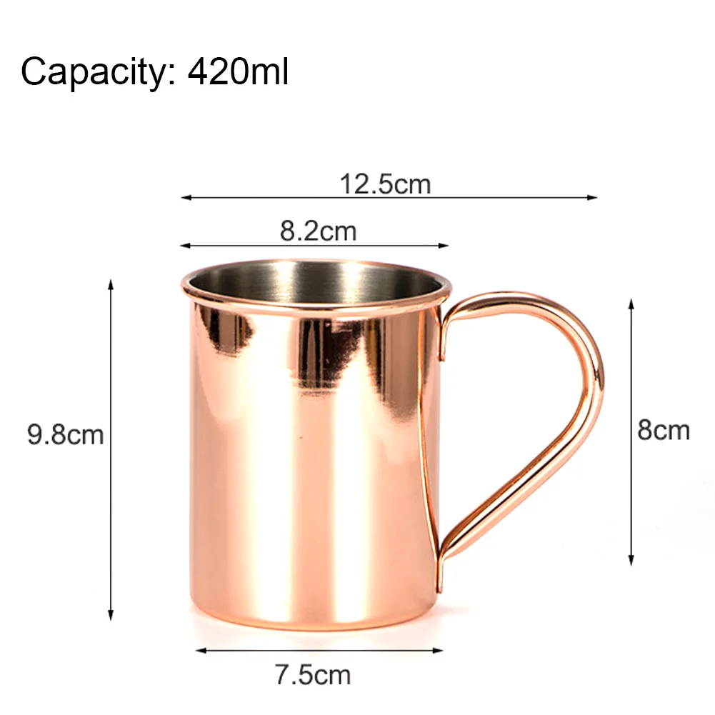 Наши медные кружки изготовлены вручную, забиваются и изготовлены из чистой твердой меди без содержания олова или никеля. Его ручка обеспечивает эргономичное сцепление, удобно держать в руке. Эта кружка идеально подходит для коктейлей, смешанных напитков, пива, чая со льдом в клубе, вечерние, ресторанные и т. Д.
