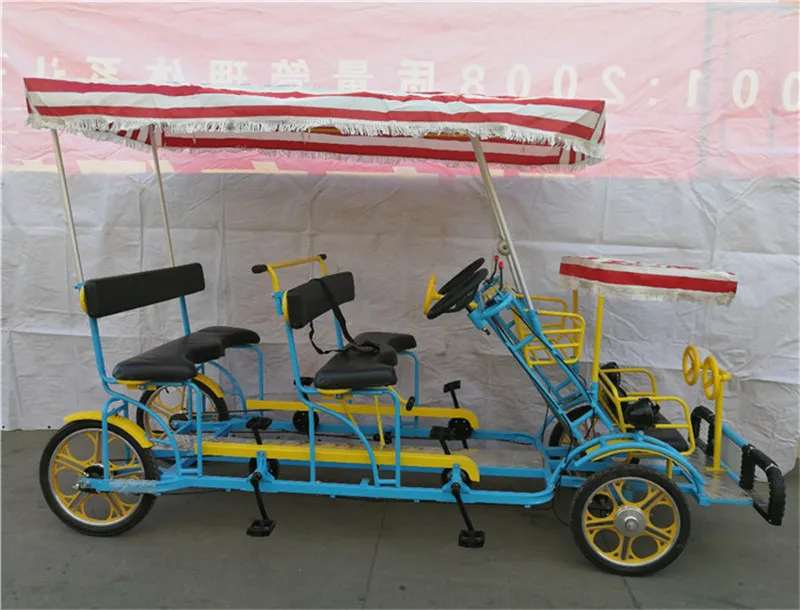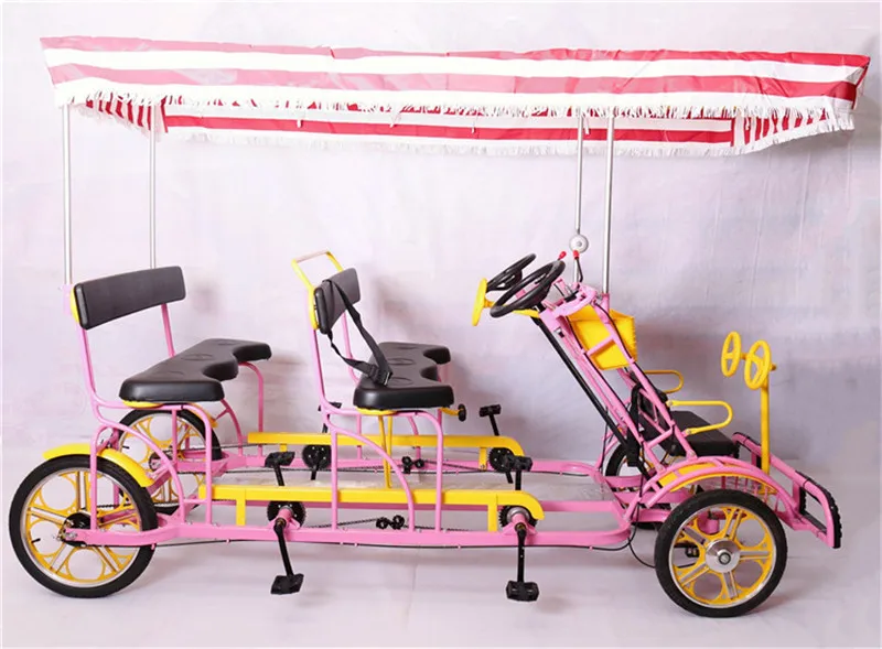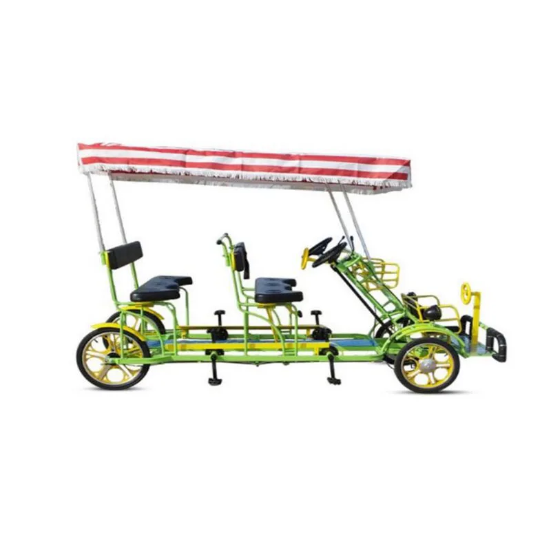 4 Seater Pedal Adult Tourist Tricycle Cargo Bike Road Tandem Rickshaw Surrey Sightseeing Bicycle
