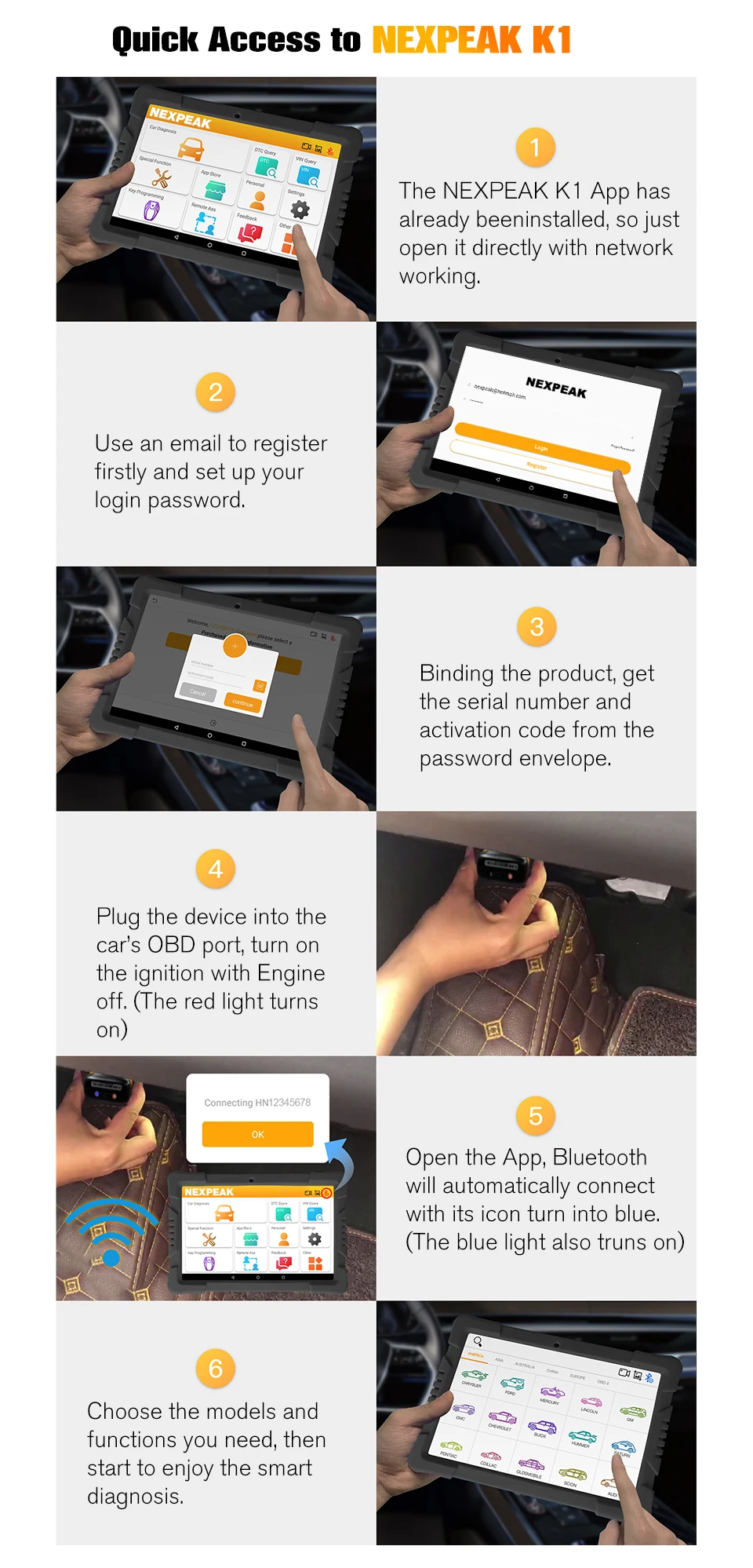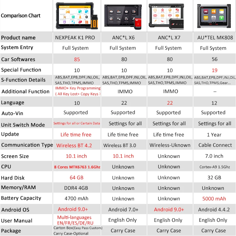 NEXPEAK K1 pro поддерживает полные системы диагностики: