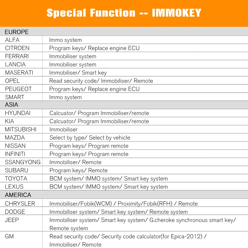NEXPEAK K1 pro OBD2 автомобильный диагностический инструмент Поддержка автомобилей на специальных функциях: