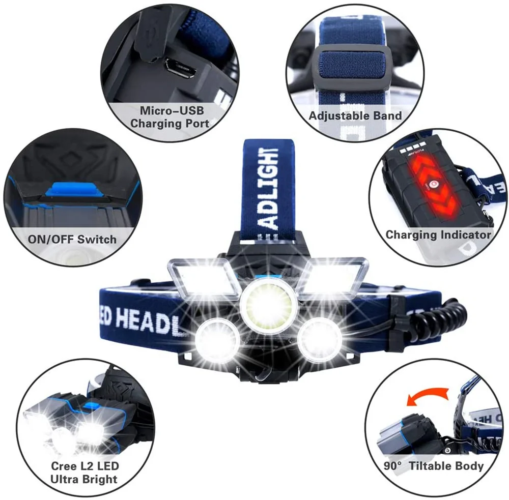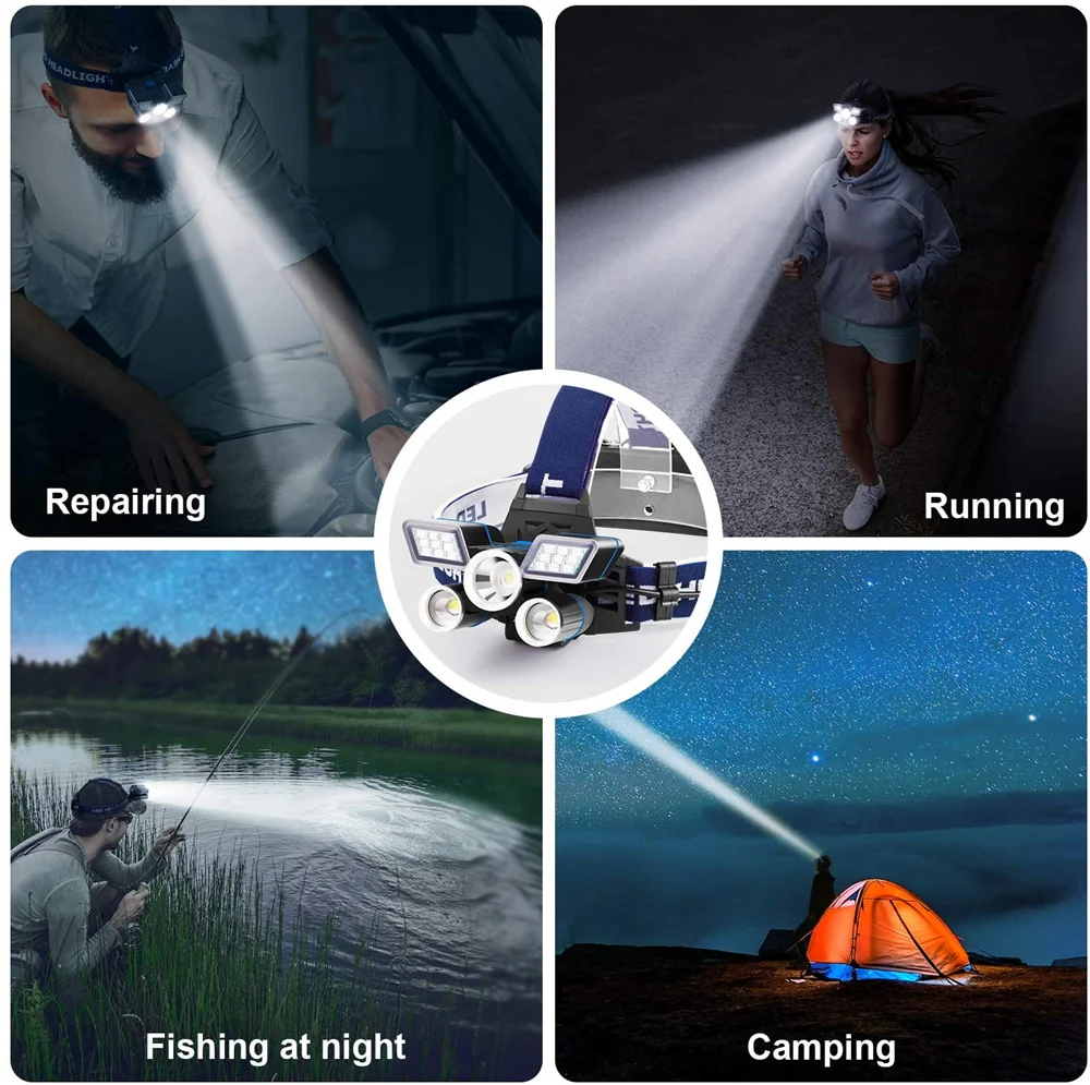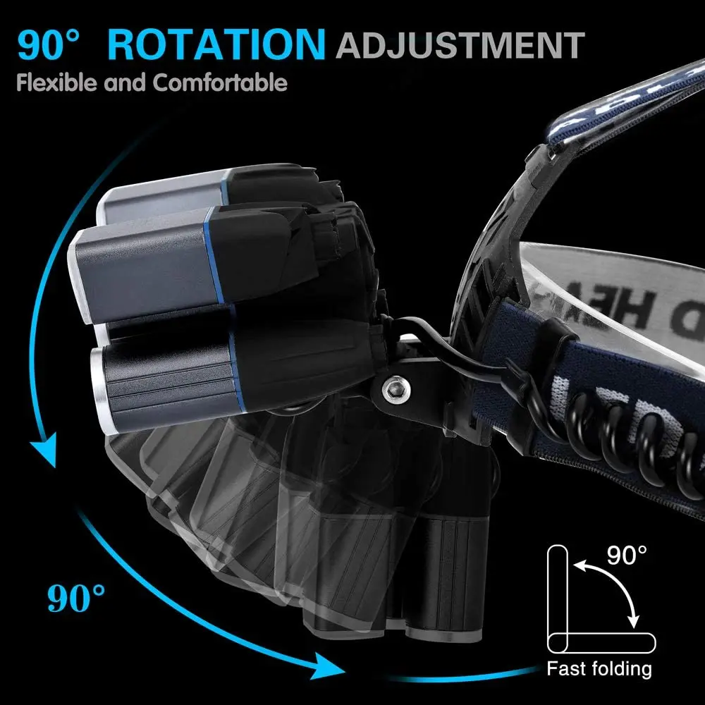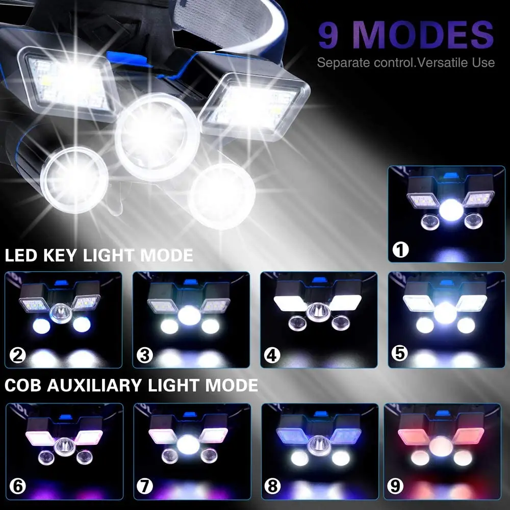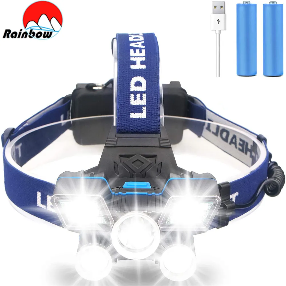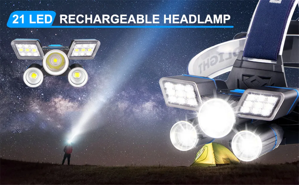Ультра яркий налобный фонарь 21 Светодиодный светильник с индикатором мощности 12000 люмен USB Перезаряжаемый рабочий светильник 9 режимов головная лампа для лагеря