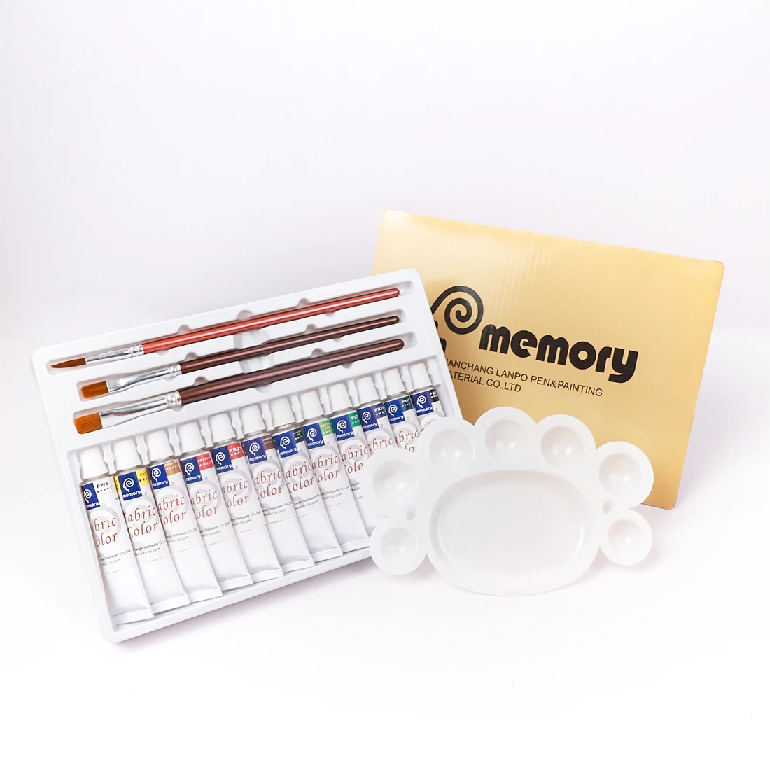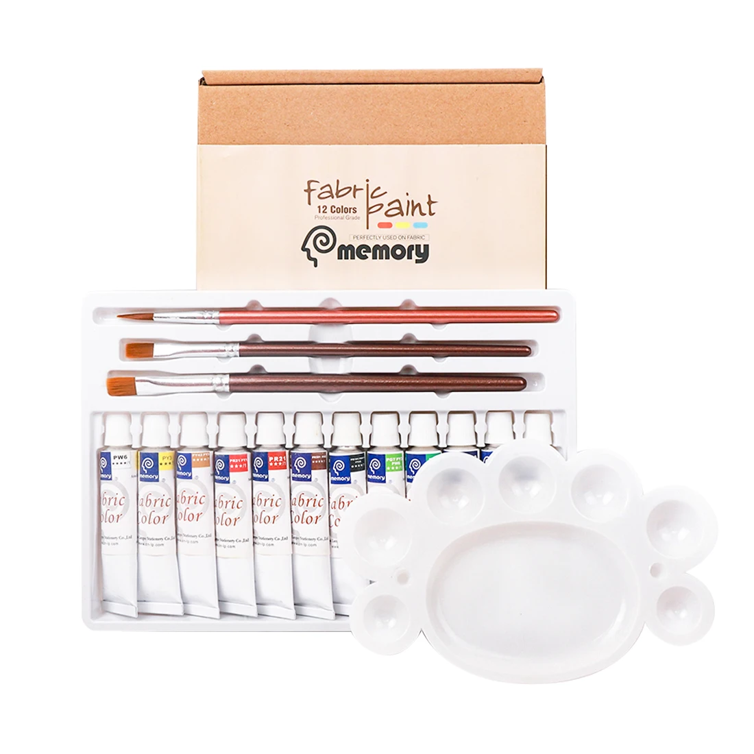 Память 12 цветов (12 мл/трубка) Набор тканевых красок поставляется в комплекте с краской, палитрой, 3 КИСТИ