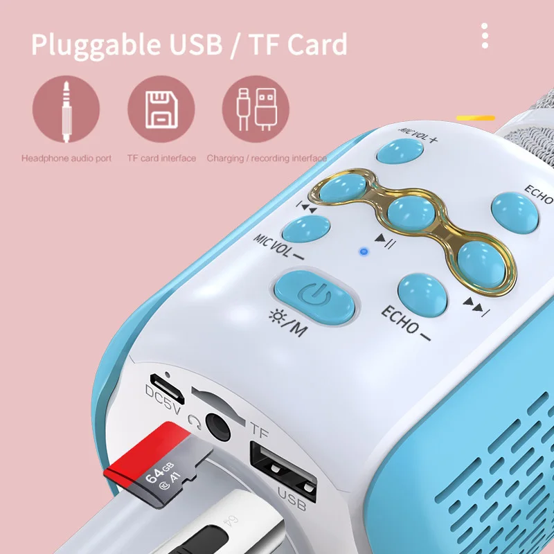 1. Портативные беспроводные микрофоны можно использовать как микрофон, bluetooth-динамик, громкоговоритель, диктофон. Мини домашний KTV для воспроизведения музыки и пения в любое время.