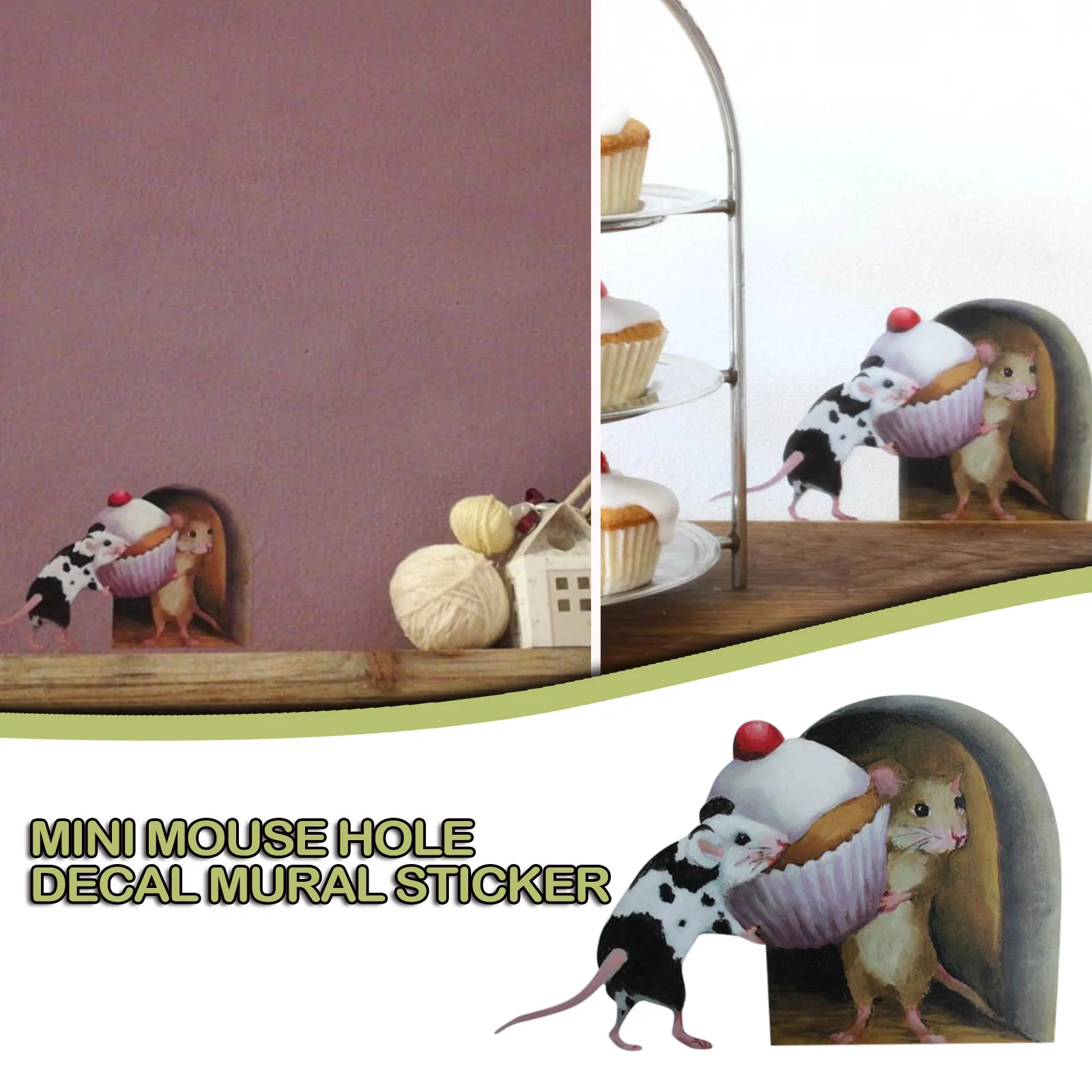 Наклейка на стену с отверстием для мыши, обои с кексами, украшение для угла стены