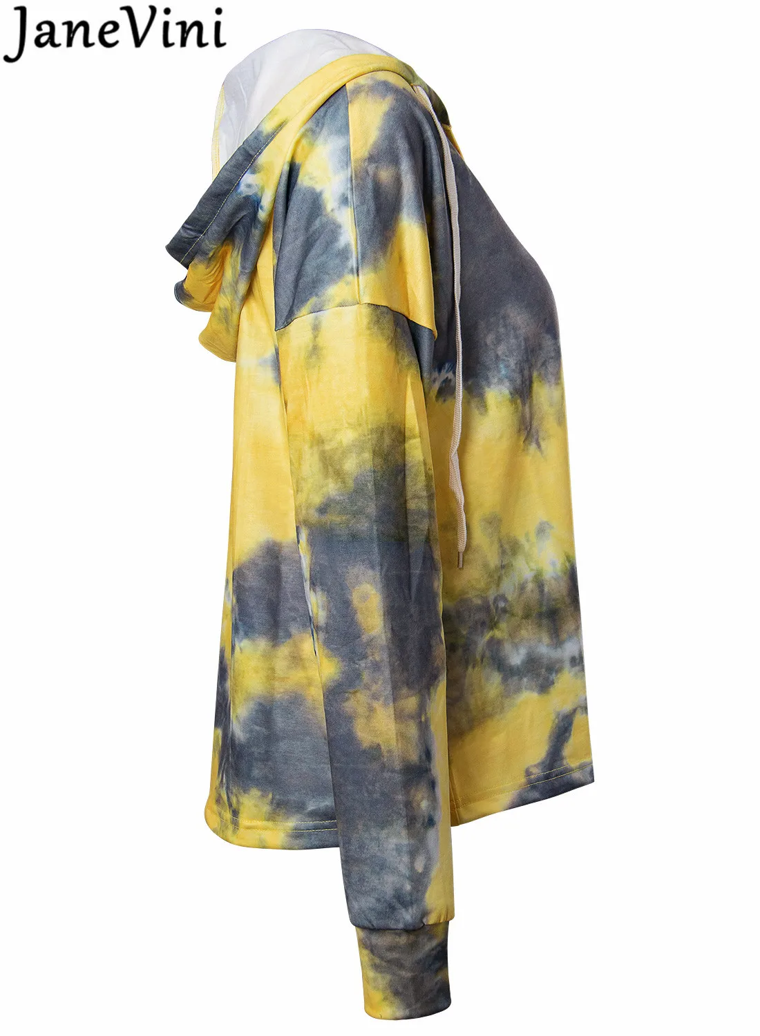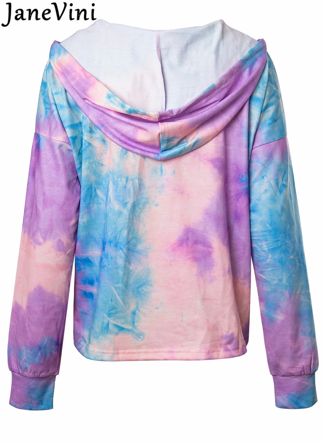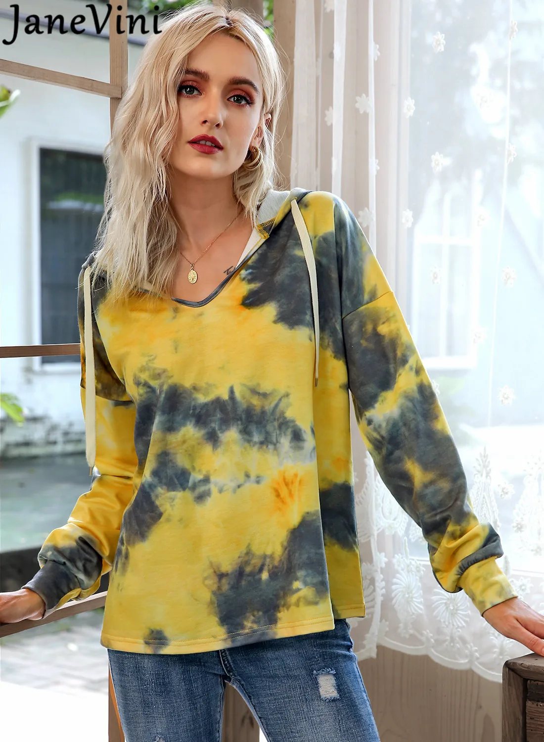 JaneVini Повседневная Толстовка, худи, Женская цветная Свободная верхняя одежда с галстуком-краской, модные женские Топы с длинным рукавом на весну и осень, уличная одежда