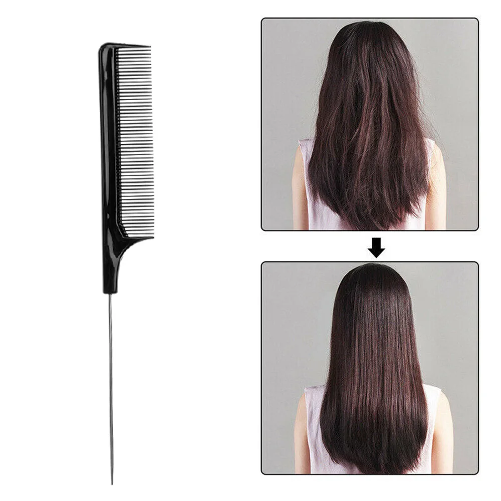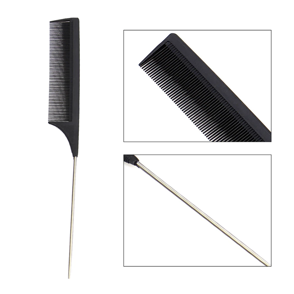 Материал: пластик и игла Размер: как показано на картинке Цвет: черный Количество: 1 шт. Посылка включает в себя: 1 * парикмахерские Идеально подходит для укладки волос Не царапает кожу головы или не повредит волосы Обратная расческа .. обертывание perms .. разрезание волос металлический штифт гребня Идеально подходит для... разделения для окрашивания волос Эти гребни изготовлены и предназначены для достижения профессионального результата. Идеально подходит для всех средств для волос, обертывания, разделения, разделения и окраски. Анти-статические помехи, термостойкая, антибактериальные,