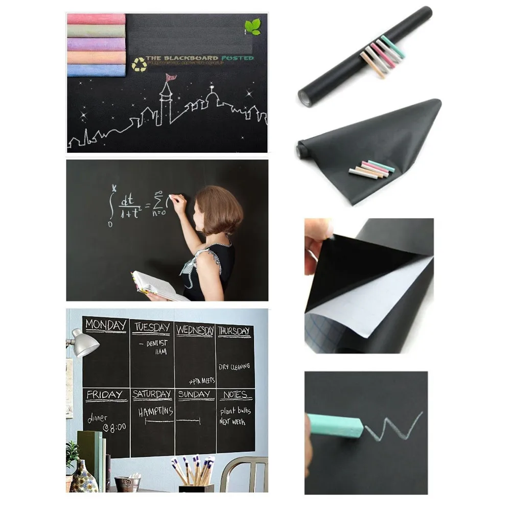 Черная Виниловая доска, самоклеящаяся доска, Настенная Наклейка с 5 мелками