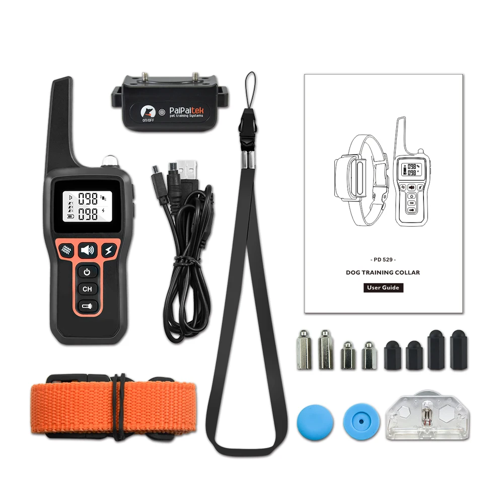 Этот тренировочный ошейник PD529 имеет 3 режима работы, вибрацию и шок звукового сигнала, с дистанционным диапазоном 1000 м, водонепроницаемый приемник IPX7, перезаряжаемый легкий тренировочный ошейник для собак