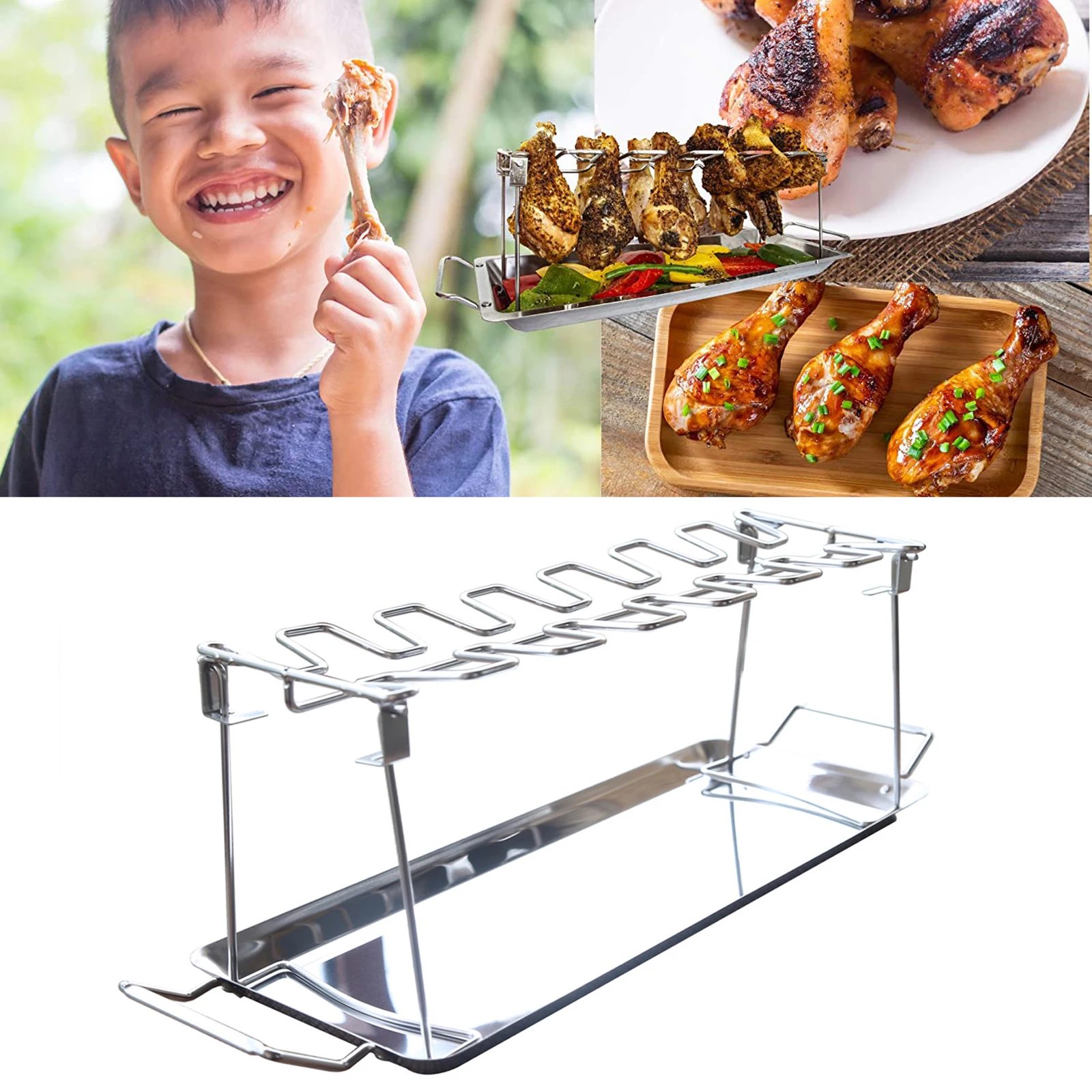 1. Chicken w-ing rack for roasting, smoking, roasting or grilling in the oven; Can hold up to 12 w-ings, legs, thighs or drumsticks; Suitable for any barbecue brand grill