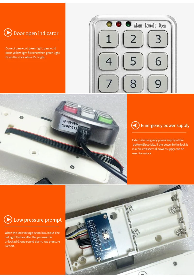 Публичный Тип: когда замок шкафа в состоянии открытия (защелка/болт в состоянии вычитания), нажмите дверь шкафа в состоянии закрытия, введите пароль, который вы устанавливаете, И нажмите кнопку «#» для подтверждения, затем можно выключить блокировку (введите пароль, который вы установите, Он может снова включить замок).