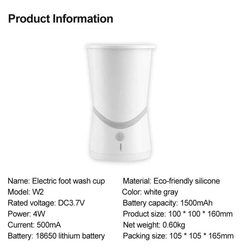 Чашка для мытья ног + зарядный кабель + руководство"
