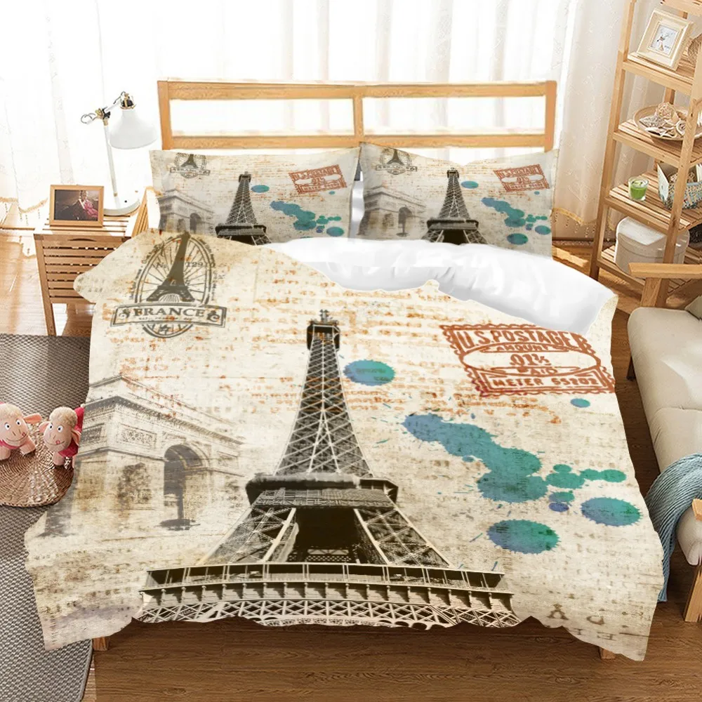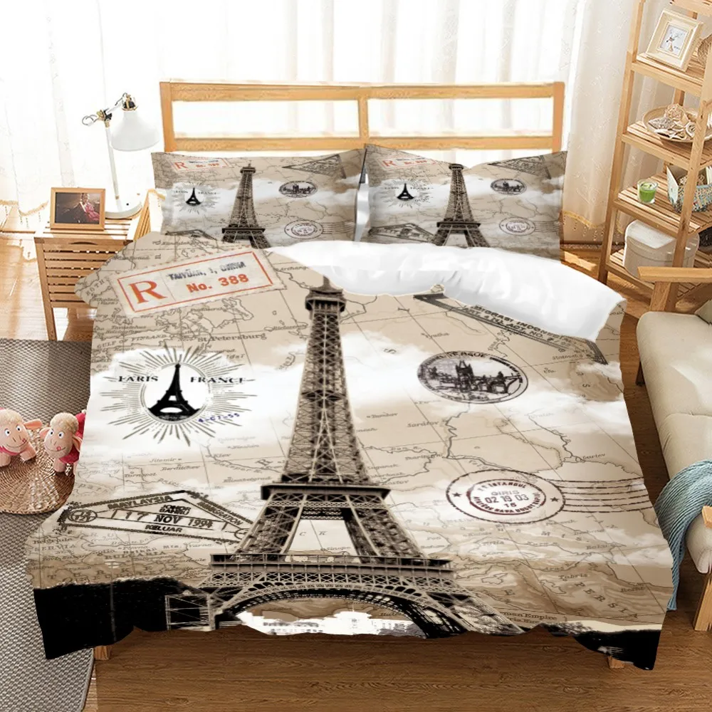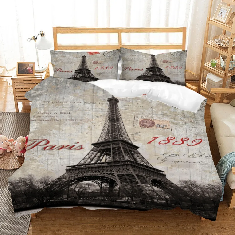 Комплект постельных принадлежностей из 3 предметов с 3D принтом Эйфелевой башни, пододеяльник, домашний текстиль, покрывало для кровати, пододеяльник для односпальной кровати «Королева», Комплект постельного белья