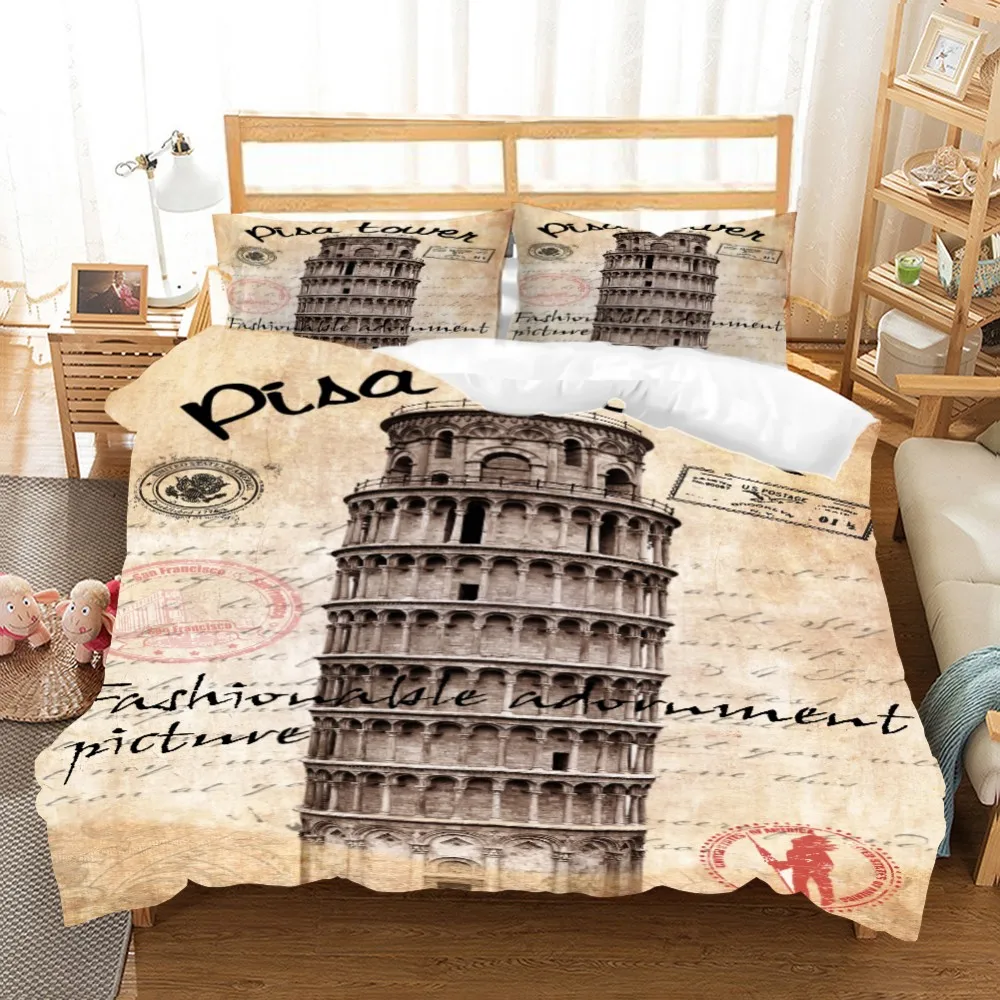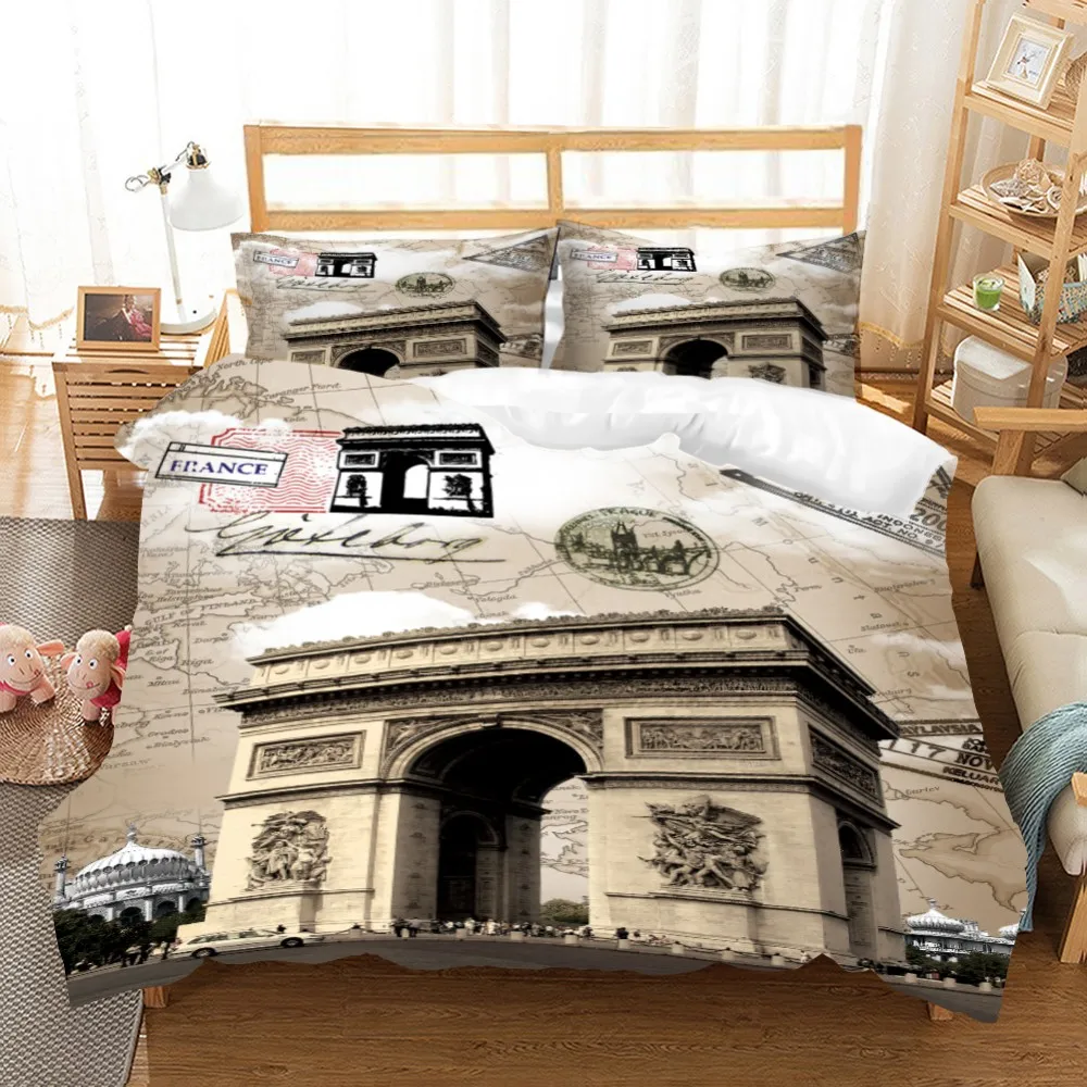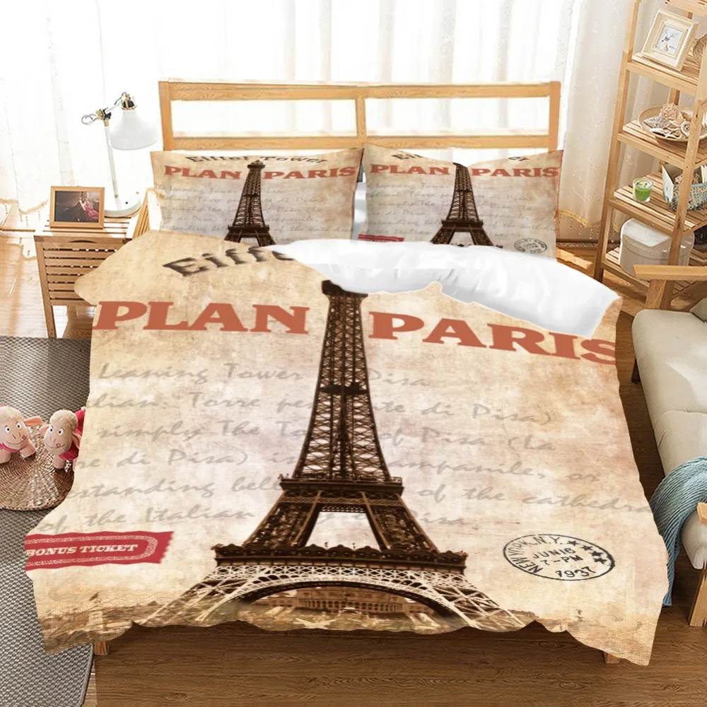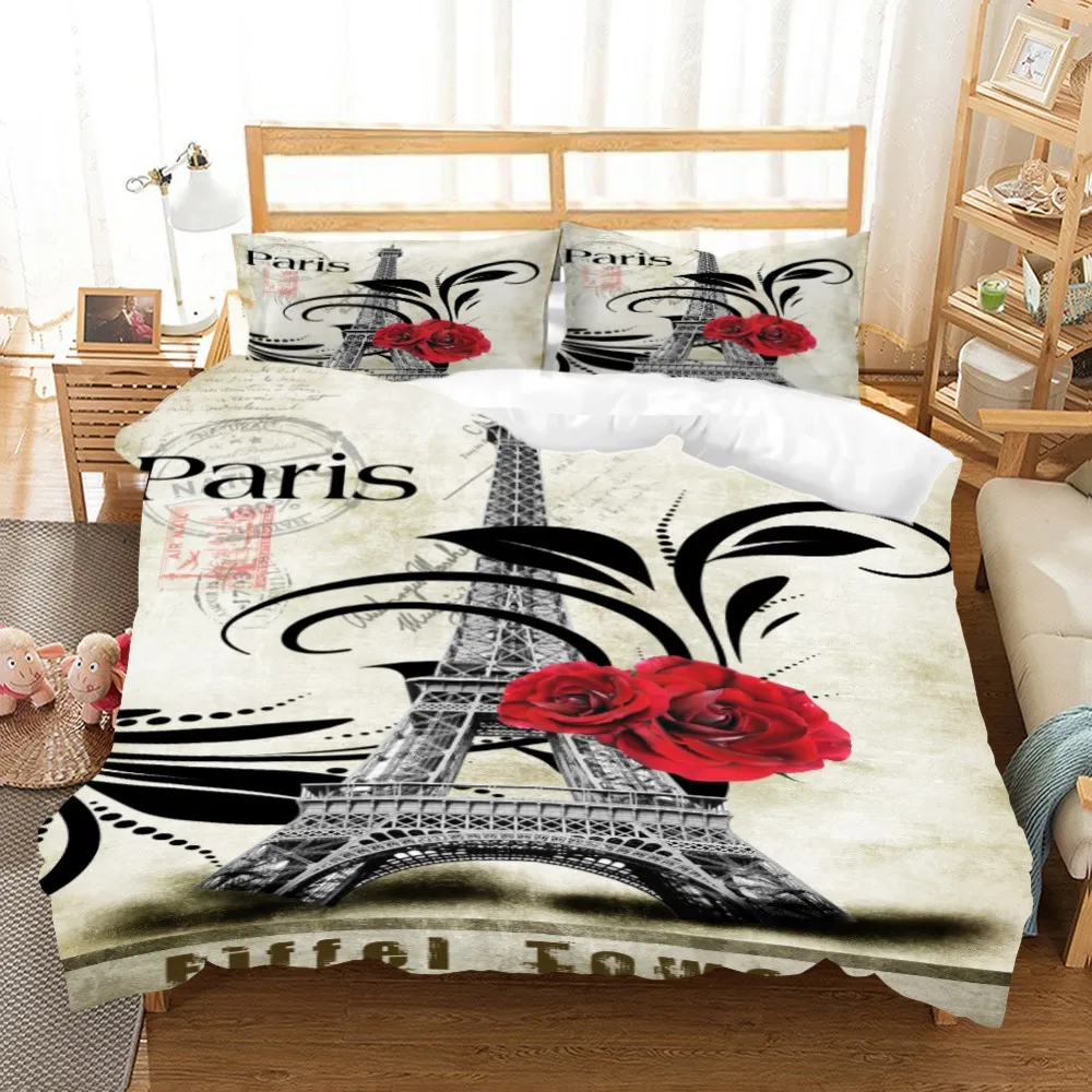 Комплект постельных принадлежностей из 3 предметов с 3D принтом Эйфелевой башни, пододеяльник, домашний текстиль, покрывало для кровати, пододеяльник для односпальной кровати «Королева», Комплект постельного белья