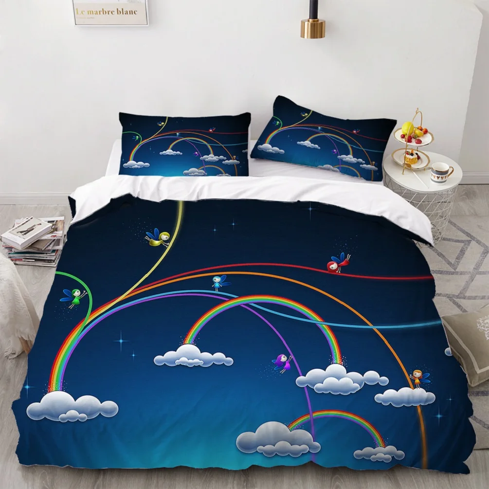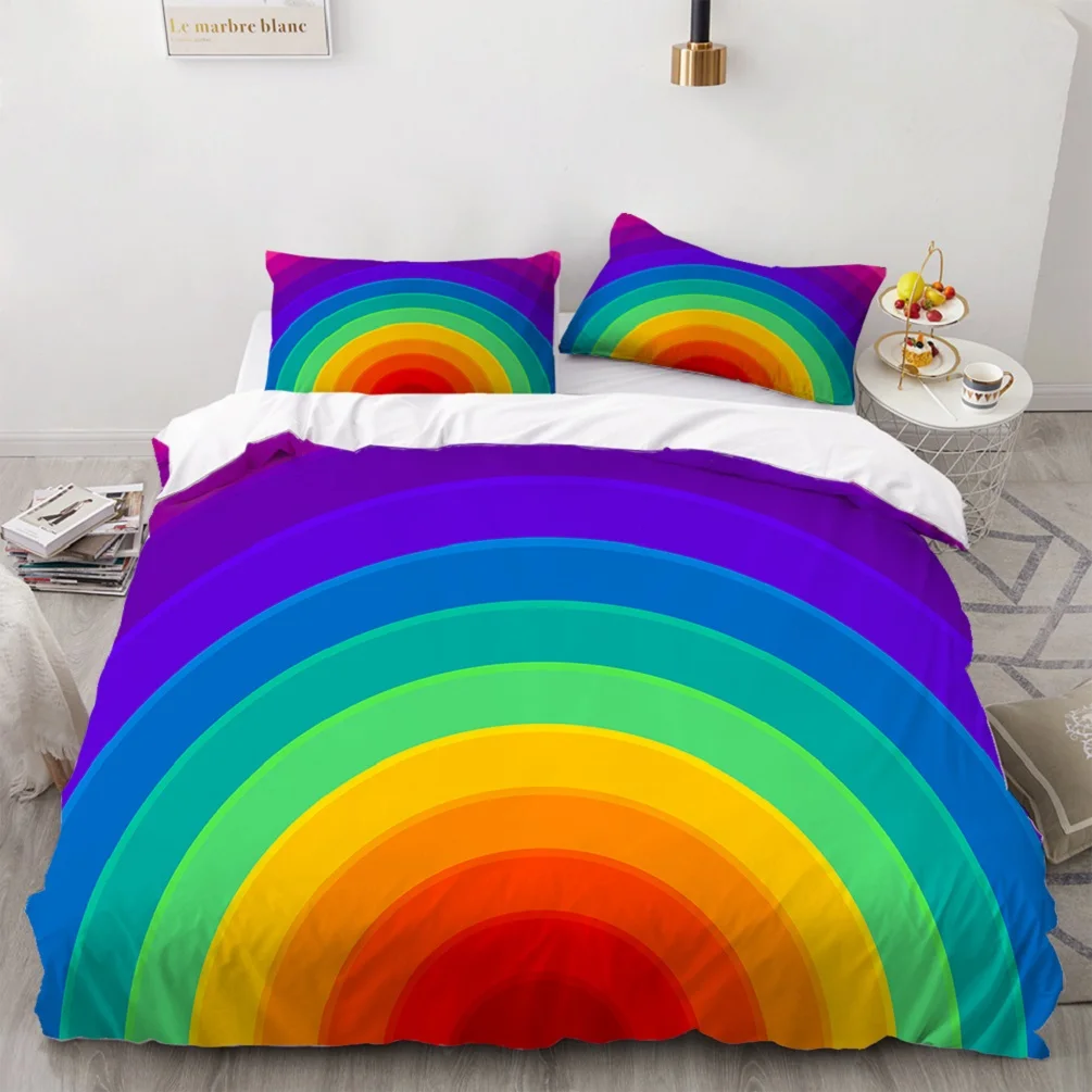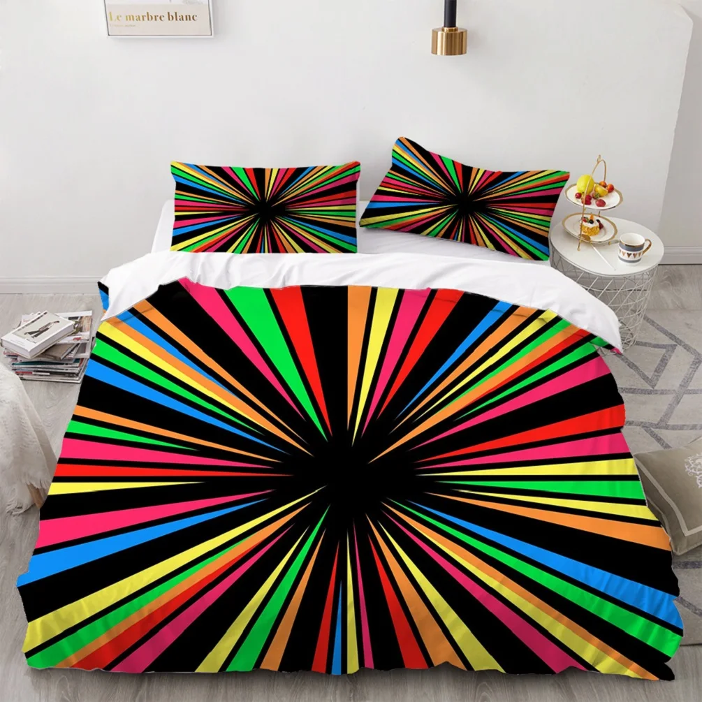 Красивый комплект постельного белья с 3D радужной полосой, 3 шт., пододеяльник, домашнее одеяло из текстиля, пододеяльник, один двойной размер королевы