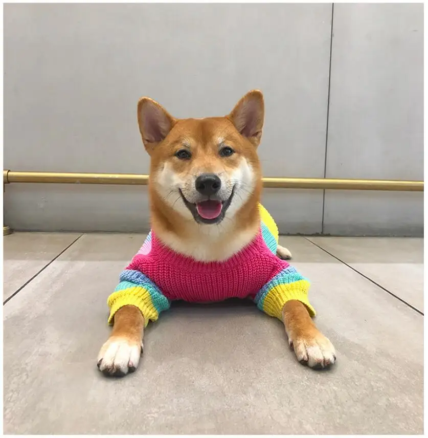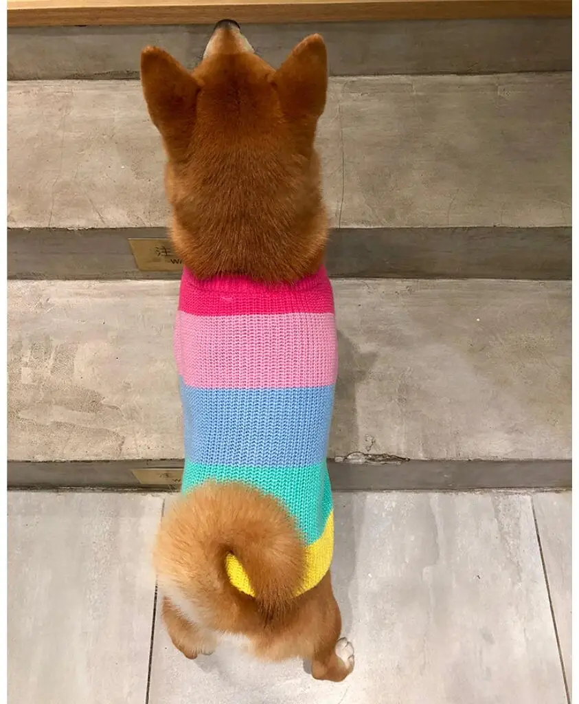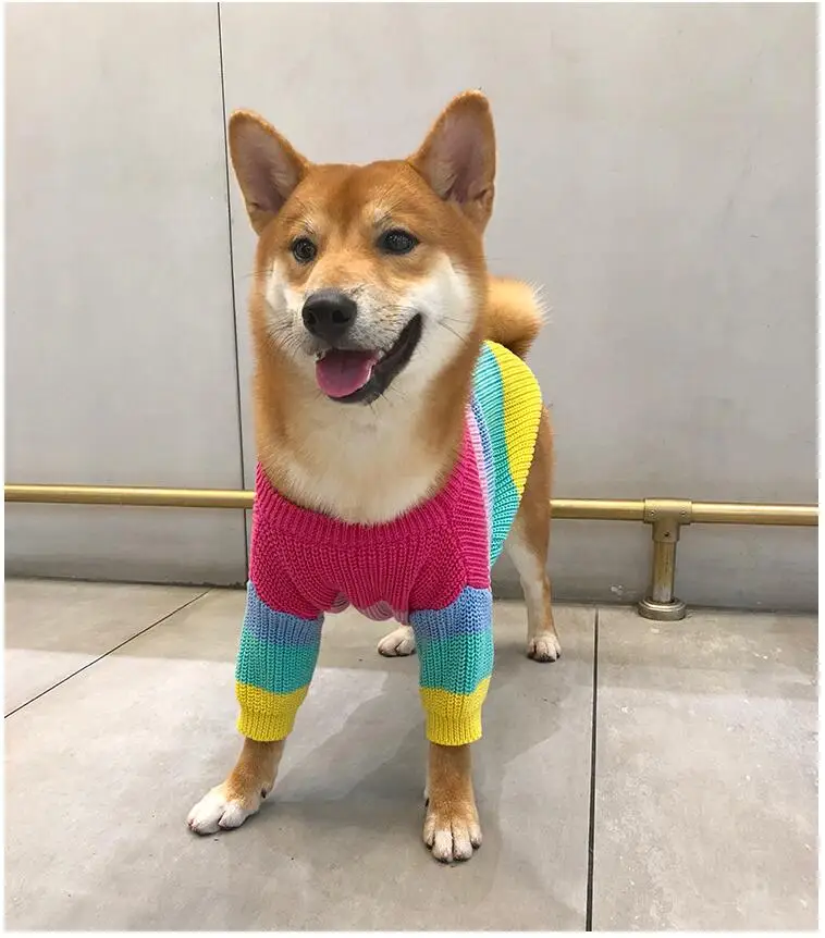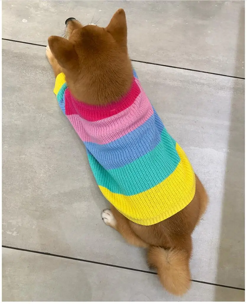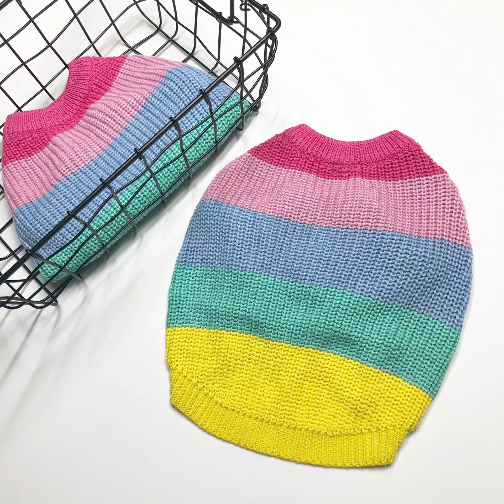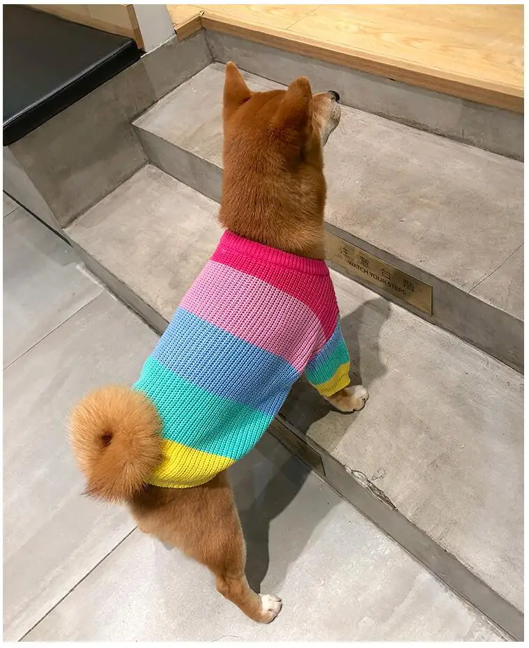 Милый свитер в радужную полоску для собак, пуловер, индивидуальный дизайн, французский бульдог, Зимняя Теплая Одежда для питомцев, для маленьких больших собак, кошек, товары для домашних животных