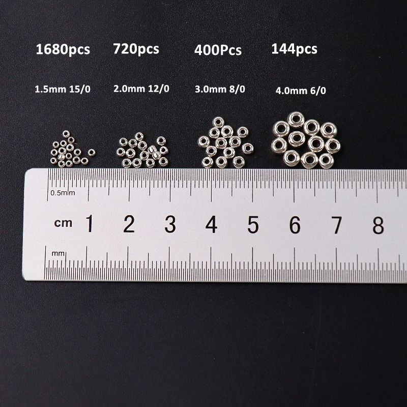 Упаковка: белая сумка на молнии и пузырчатая сумка, мы заботимся о посылка Посылка: Вы получите 10 г за лот по прайс-листу 1,5 мм приблизительно 10g 1680 шт 2,0 мм 10 г прибл. 720 шт 3,0 мм 10 г около 400 шт 4,0 мм приблизительно 10g 144 шт