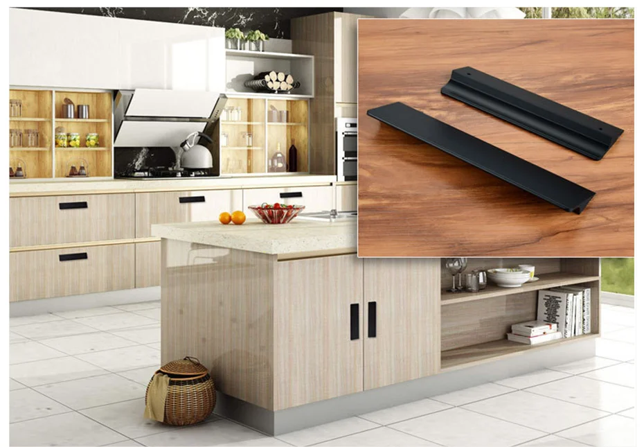 Black Silver Gold Hidden Cabinet Handles Aluminum Alloy Kitchen Cupboard Pulls Drawer Knobs Door Furniture Handle Hardware