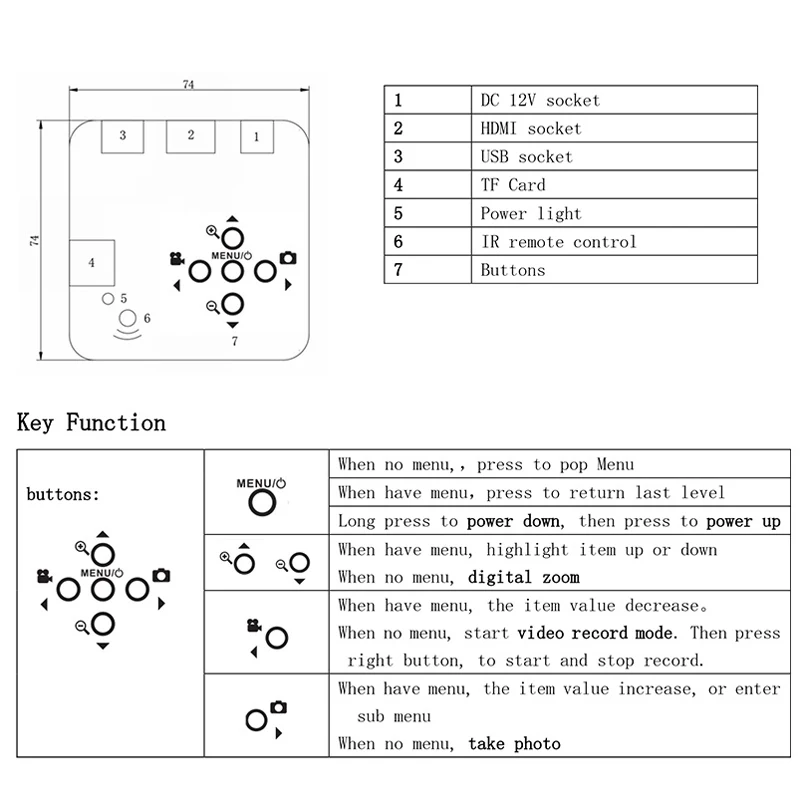 1.HDMI подключение монитора или UVC ссылка компьютера, подключите в 12 В источник питания