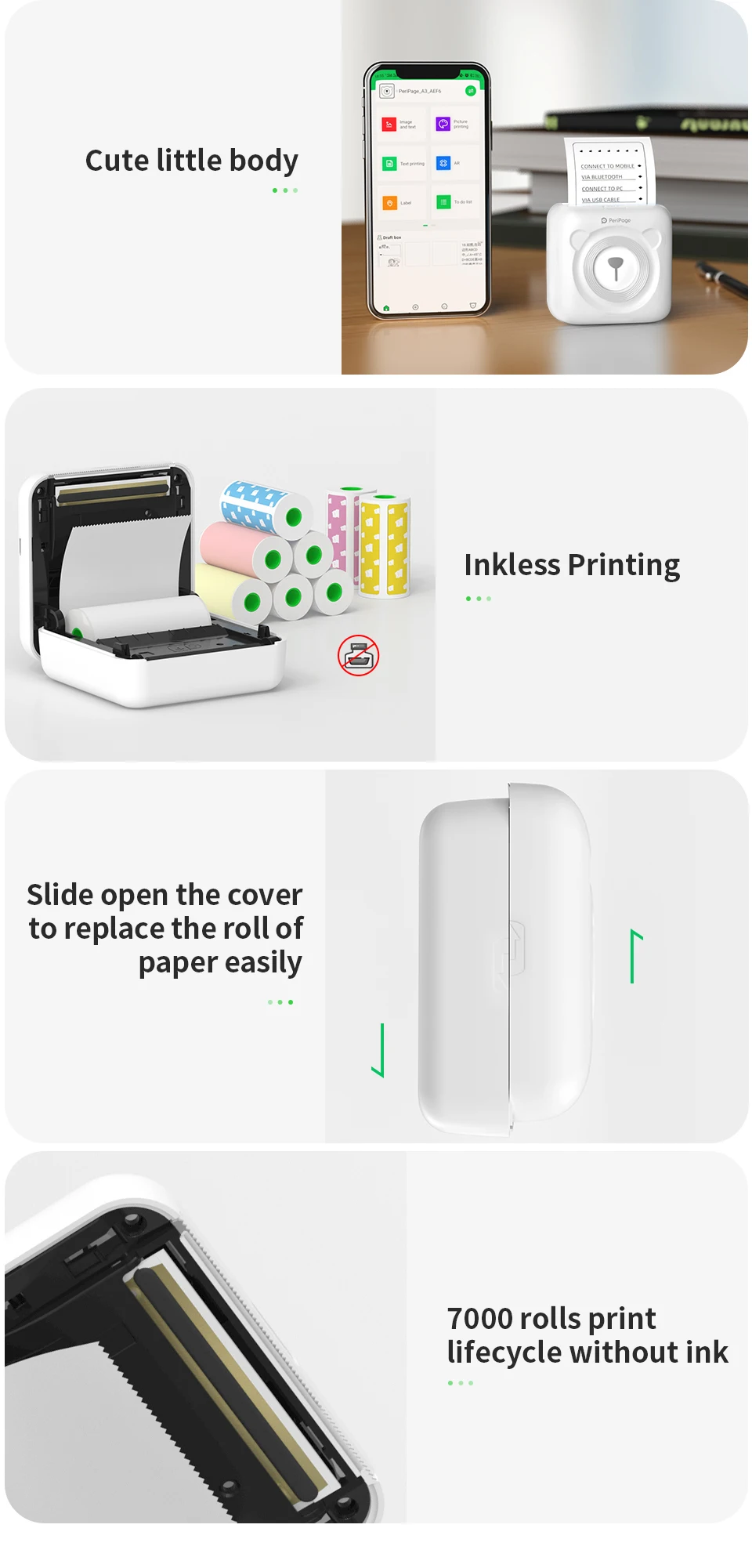 С технологией термопечати и высококачественной печатной головкой, термобумага вместо чернил, более тихий, быстрый и более энергоэффективный