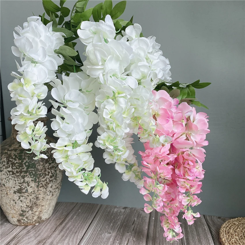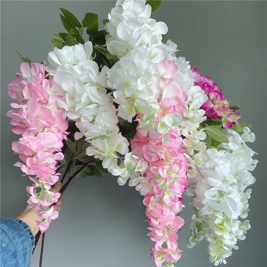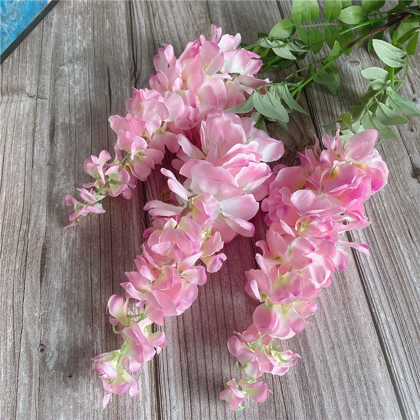 3 вилки/ветка длинные Вистерия искусственная цветов с зелеными листьями для