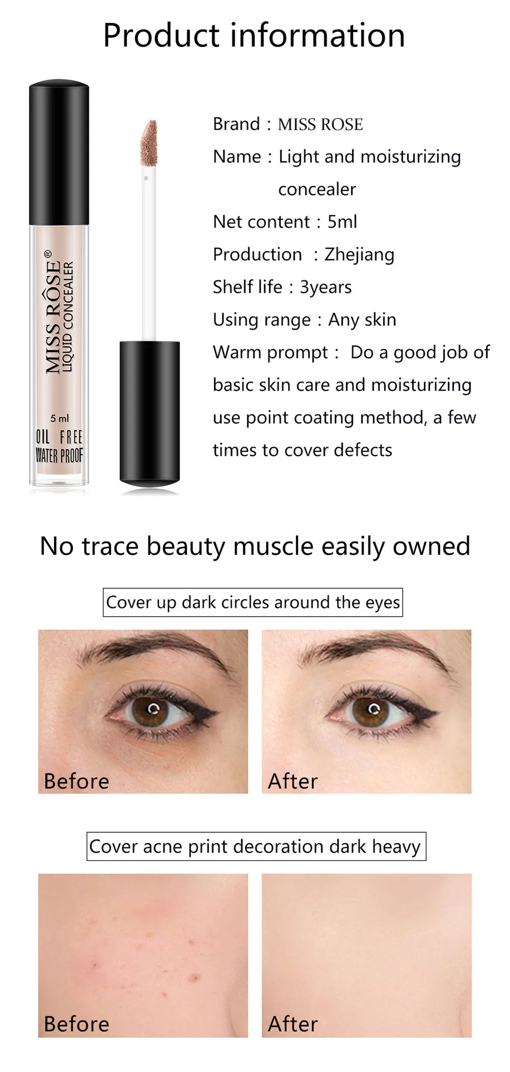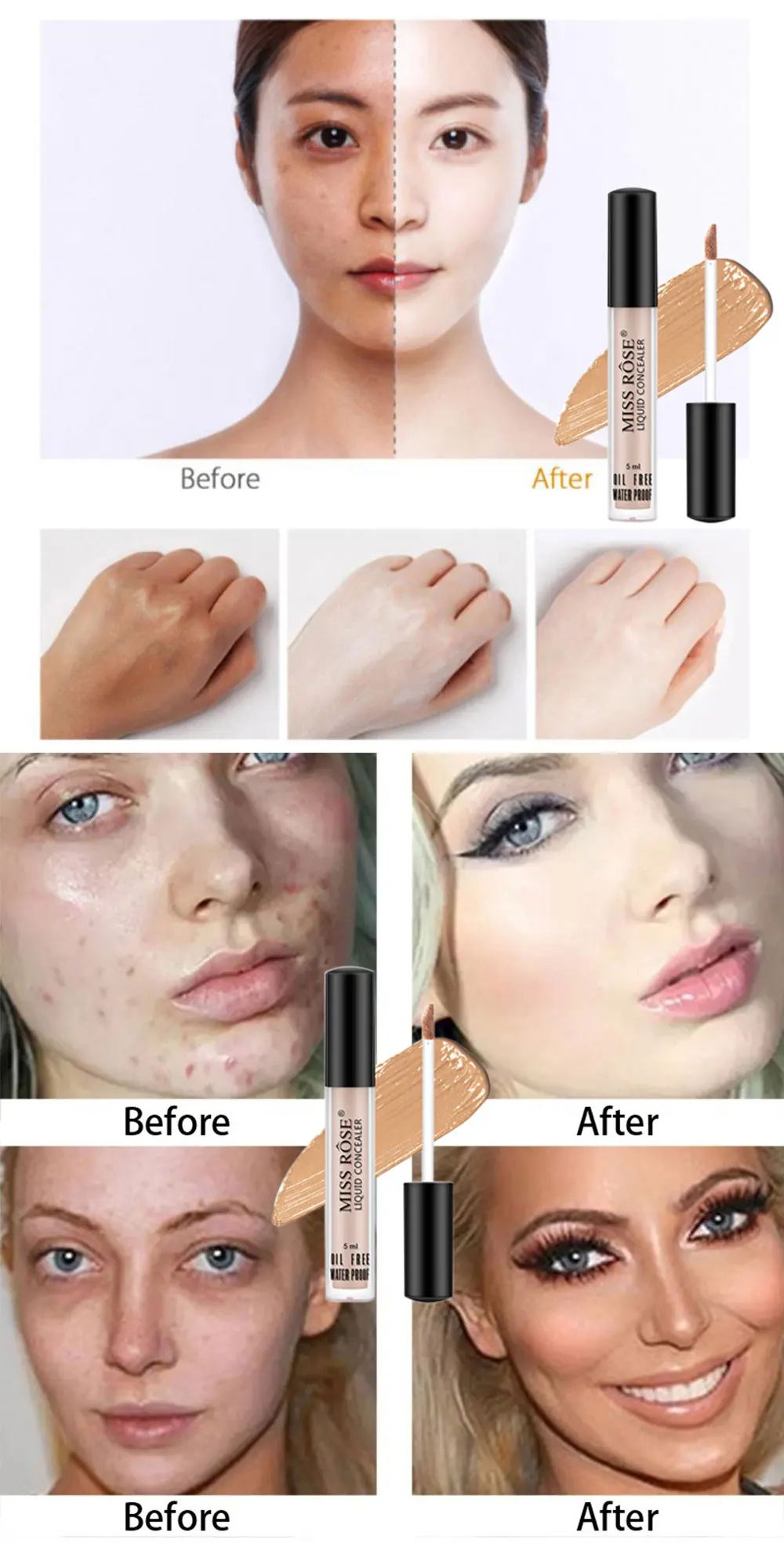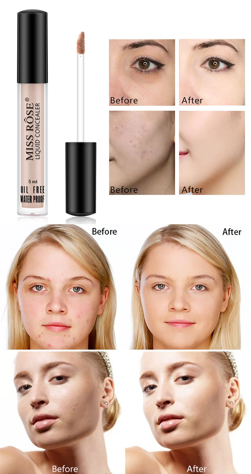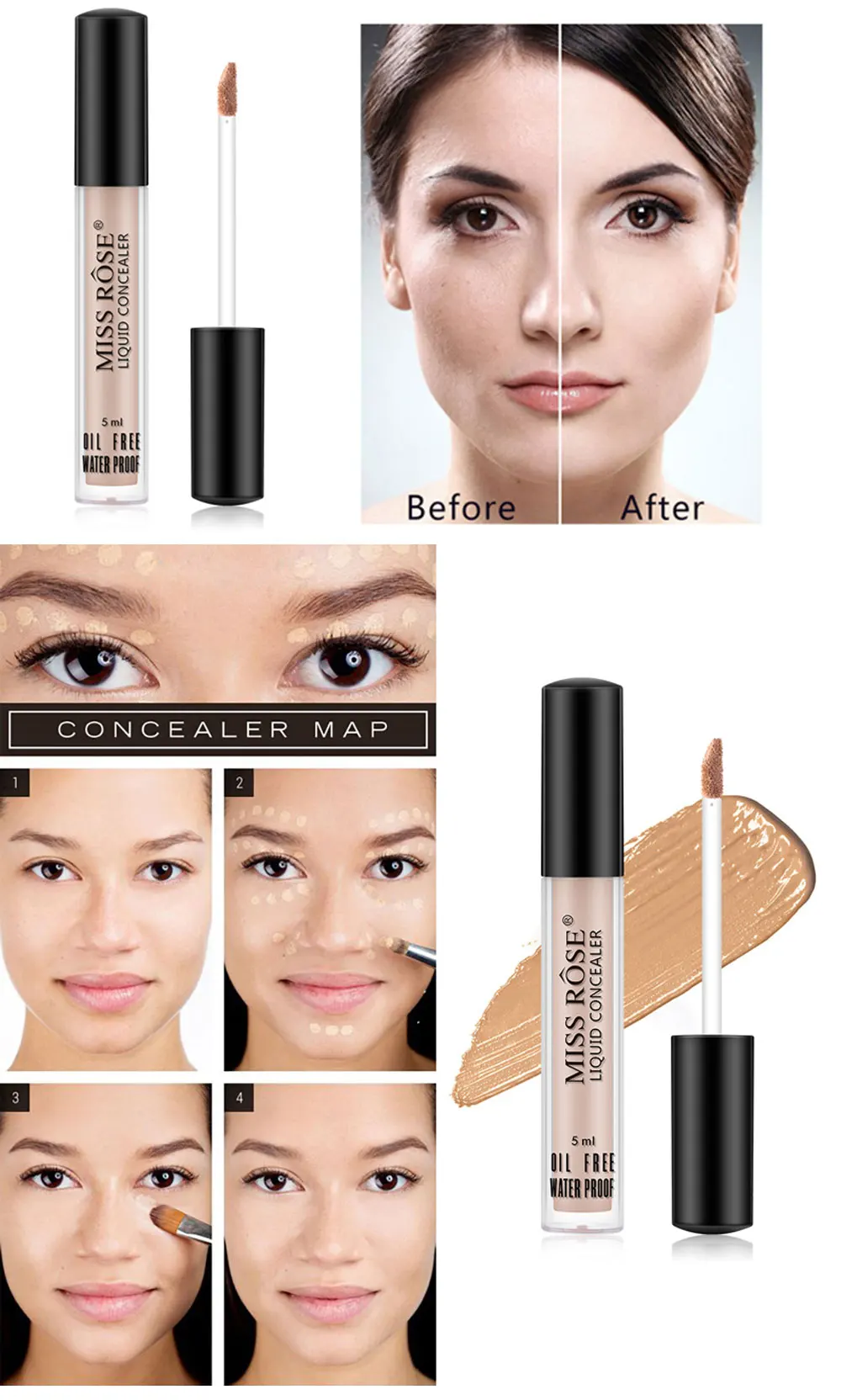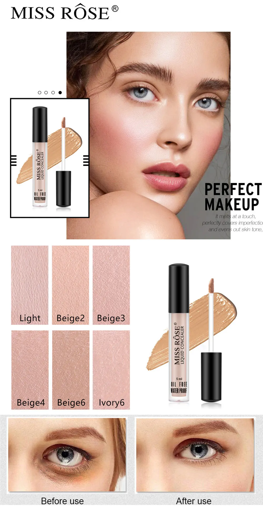 Он не только эффективно покрывает лицо, акне, шрамы, веснушки, но также используется для основа под тени для век и покрывает темные круги.