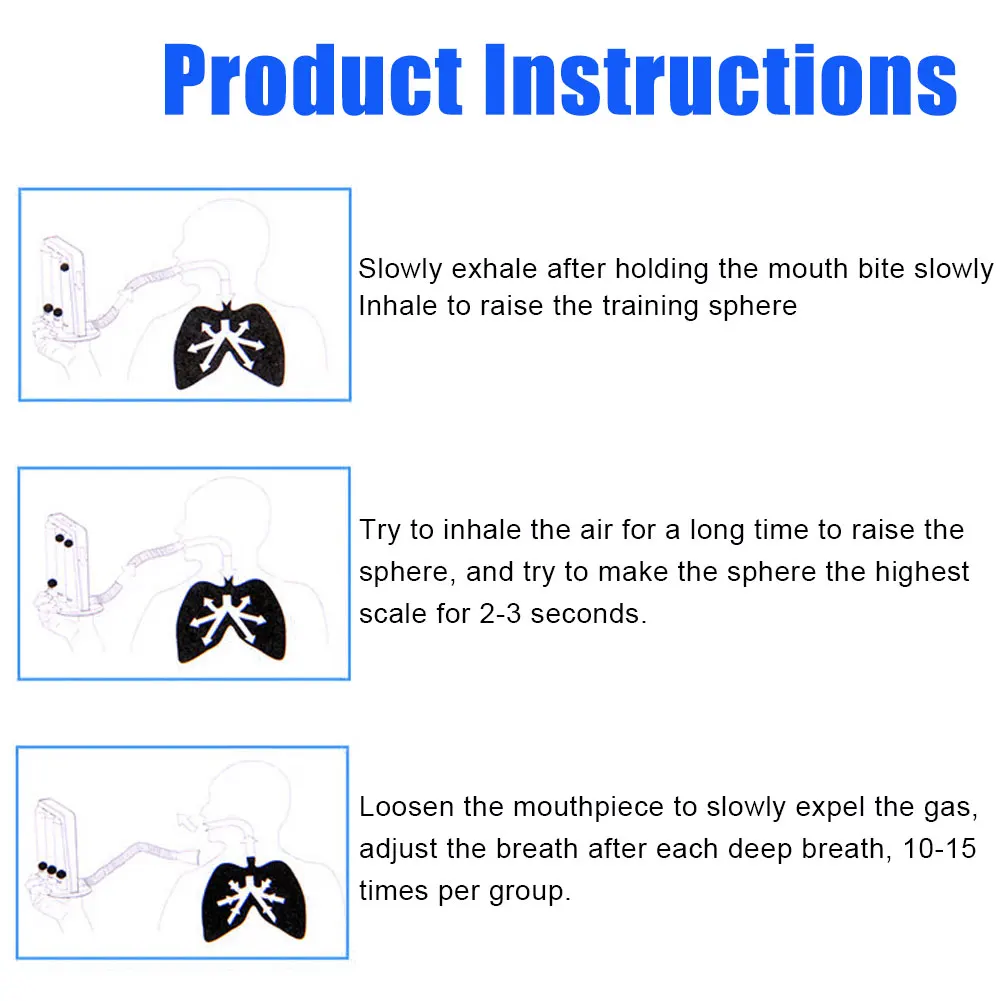 * 5. Прост в использовании. Ваша цель-сделать глубокий вдох и поплавать цветные шары в каждой колонне. Каждый шар представляет воздух, который вы вдыхаете: желтый означает, что вы вдыхаете 600 мл/мл, Зеленый означает 900 мл/мл, белый означает 1200 мл/мл, плюс 2700 мл. Вы можете измерить и записать максимальное усилие при вдыхании.