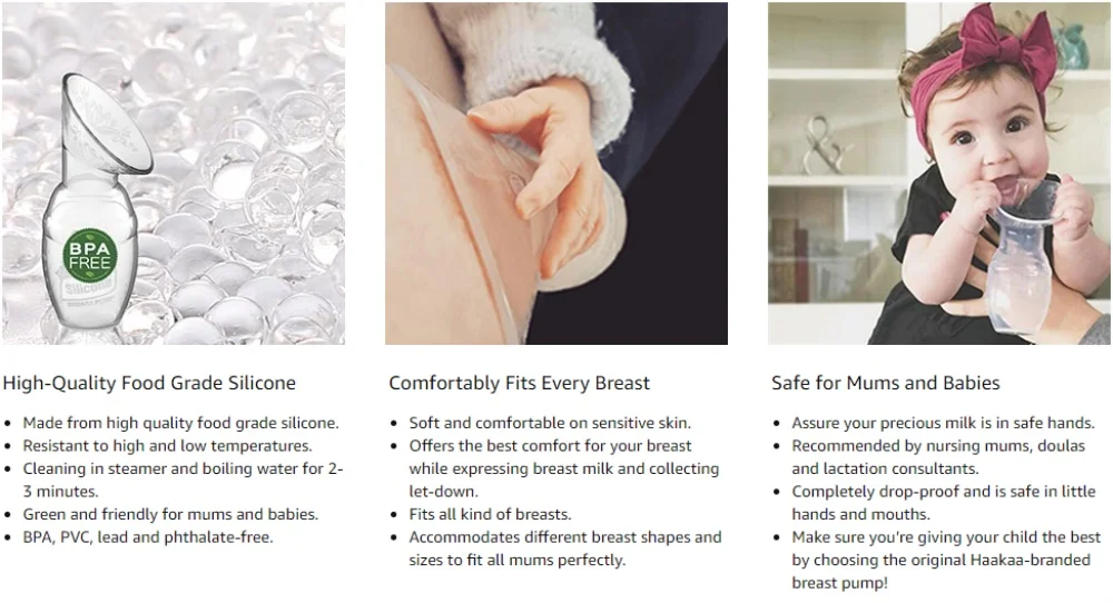 Награжденный наградами и самый продаваемый силиконовый молокоотсос Haakaa, рекомендованный кормящими мамами, журналами, знаменитостями, doulas и экспертами по лактации по всему миру! Убедитесь, что вы даете своему ребенку лучшее, купив оригинальный силиконовый ручной молокоотсос от бренда Haakaa! Силиконовый молокоотсос Haakaa позволяет Экспресс-доставлять молоко, используя силу естественного всасывания! Просто сдавите, прикрепите к груди и дайте ей волшебство. Забудьте о дорогих электрических молокоотсосах, которые трудно использовать и невозможно очистить-силиконовый насос Haakaa не требует каких-либо шнуров или сборки, гладкий внутри и чрезвычайно легко чистить, просто закипав в воде в течение 2-3 минут. Наш ручной молокоотсос легкий, портативный и идеальный инструмент для каждой детской сумки. Используйте его в поездках на большие расстояния или в любом месте, где бы вы ни хотели, чтобы выразить бесшумно, незаметно и быстро. Во время грудного вскармливания Прикрепите его к боковой груди, чтобы поймать любую надпись, которая в противном случае будет потеряна в одноразовых подушечках для кормления. Gen. 2 Haakaa ручной молокоотсос поставляется с всасывающим основанием, которое прилипает к плоским поверхностям, чтобы предотвратить случайные разливы. Каждая мама хочет лучшего для здоровья своего ребенка, поэтому мы стремимся создать самые экологически чистые продукты, которые мы можем. Все Силиконовые молокоотсосы Haakaa изготовлены из высококачественного пищевого силикона и не содержат BPA, ПВХ и фталатов. Запатентованный дизайн-патент № USD808,006S. Оригинальный продукт: оба способа упаковки являются подлинными. Пожалуйста, не стесняйтесь покупать.