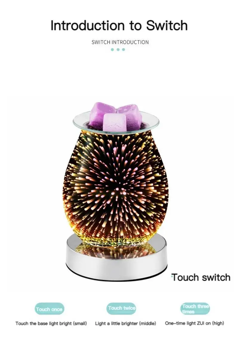 3D ослепительный фейерверк украсит вашу комнату, и Трехпозиционное затемнение позволяет регулировать яркость светильник одним касанием переключателя в соответствии с вашим настроением. Блестящий цветной светильник позволит вам и вашему партнеру почувствовать аромат и насладиться красотой в теплой и романтичной обстановке.