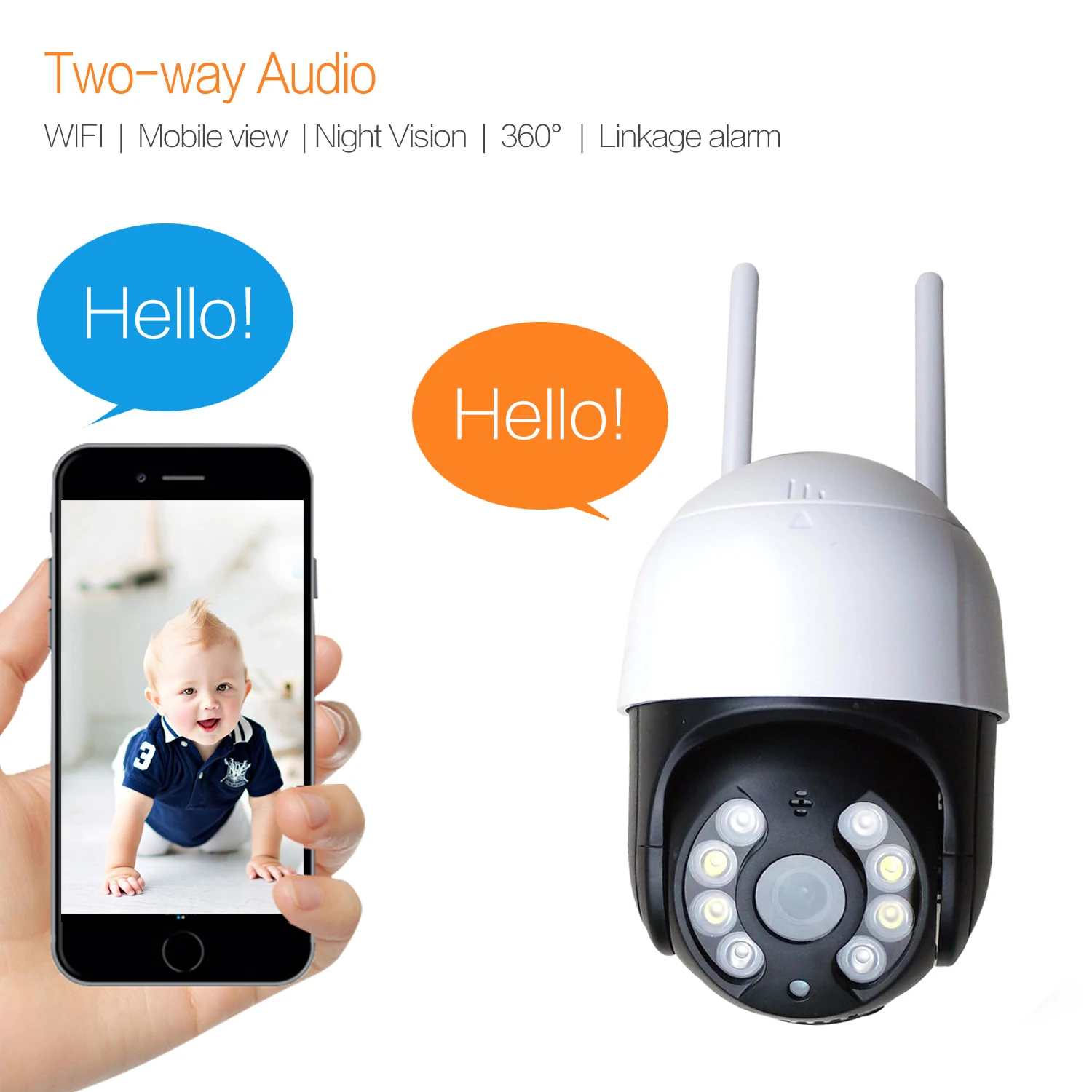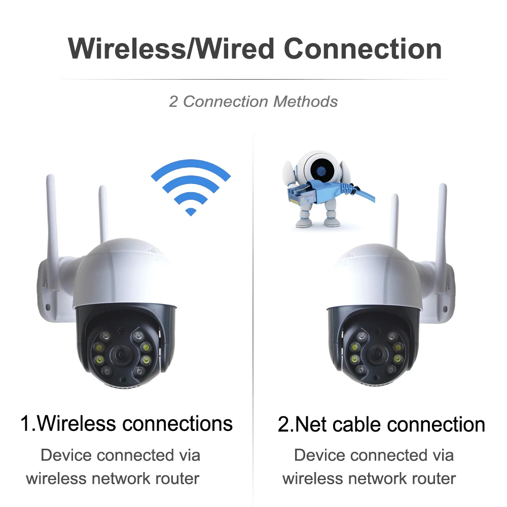 Вы можете подключить беспроводную ip-камеру живое видео и звук из любой точки мира через мобильное приложение. Поддержка двусторонней голосовой связи
