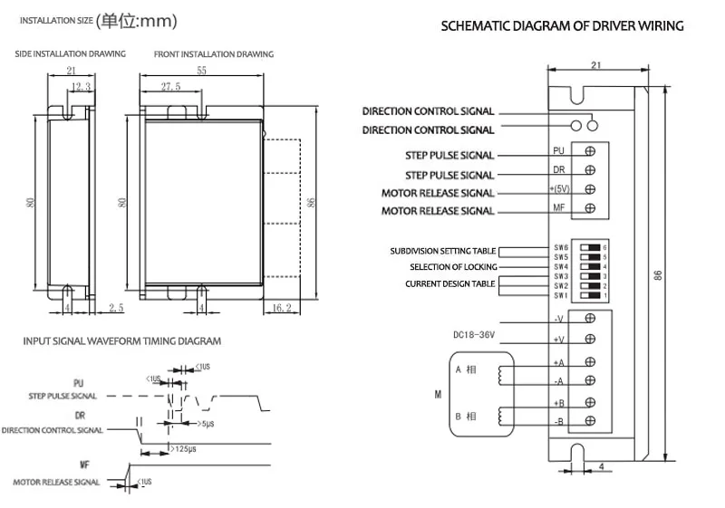 1. Не обращайте вспять источник питания, и входное напряжение не должно превышать DC36V 2. Уровень входного сигнала управления составляет 5 В, и требуется ограничительный резистор тока, когда он выше 5 В 3. Индикатор неисправности AL ARM светильник включен, пожалуйста, проверьте после выключения питания: (1) напряжение источника питания ниже, чем DC18V или выше, чем DC36V (2) повторное включение после удаления электропроводки двигателя и других неисправностей короткого замыкания 4. Зеленый светильник PWR включен, когда привод включен