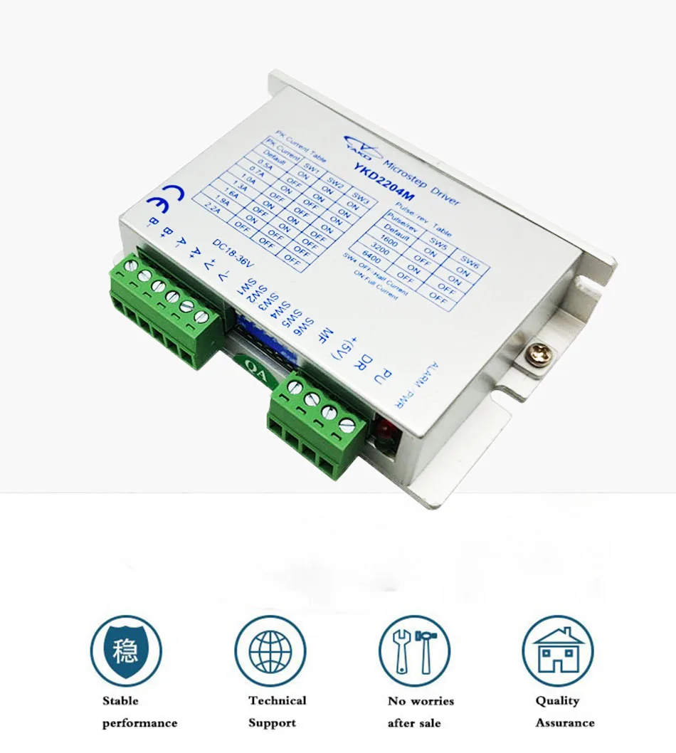 1. YKD2204M-это высокопроизводительный цифровой шаговый драйвер на основе нового поколения 32-бит DSP технология, с вождения напряжение DC18 ~ 36V. Адаптационный пиковый ток ниже 2 А, внешний Различные типы двухфазных гибридных шаговых двигателей диаметром 4 2 мм. 2. В приводе используется принцип внутреннего управления, уникальный дизайн цепи и улучшенный алгоритм обработки программного обеспечения, что делает двигатель плавным, шумом, вибрацией и т. д. Он имеет высокую производительность с точки зрения производительности; Гладкой и точной технологии управления значительно снижает нагрев двигателя; Внешний 4-х скоростной равнобокая угловая постоянный крутящий момент подразделение, объемом до 32 подразделения; Оптрон Общий вход сигнала анода, сильная способность анти-помех; С перенапряжением, под напряжением и другими функциями защиты от ошибок; Стабильная в средних и низких скоростных применениях, таких как медицинское оборудование, диспенсеры, И лазерная гравировка Преимущества производительности, низкой вибрации и низкого уровня шума очевидны, что может значительно улучшить производительность оборудования.