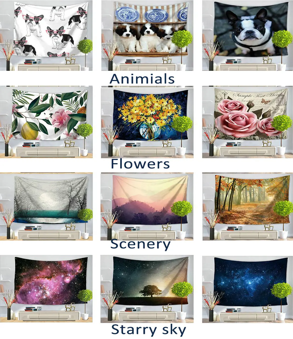 1. Гобелены изготовлены из очень мягкой легкой полиэфирной ткани. 2. Яркие цвета и четкие линии. 3. Прочный материал, многоразовый для внутреннего и наружного использования. 4. Деликатная машинная стирка или Ручная стирка в холодной воде, без отбеливателя, не подвергать высокому нагреву.