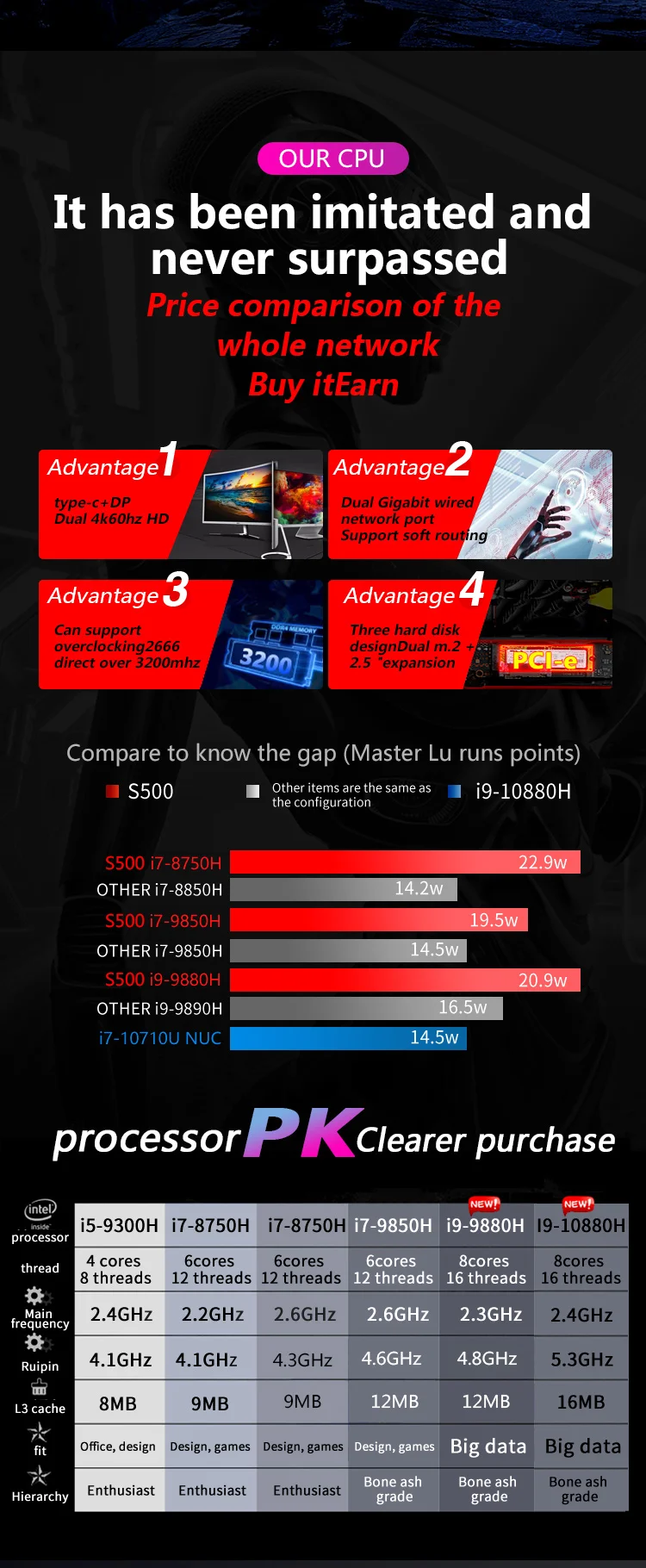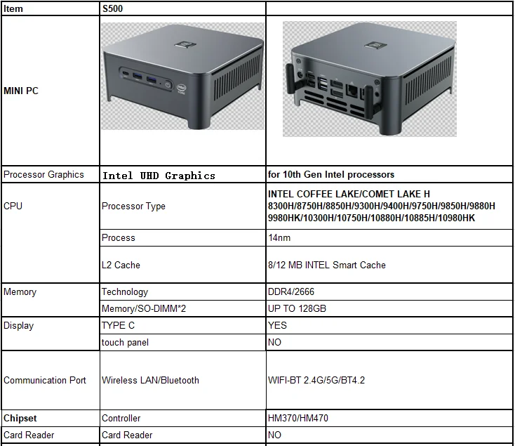 Мини ПК S500Win10/Linux i5/i7/i9 (9880H/9980HK/10880H/10980HK)