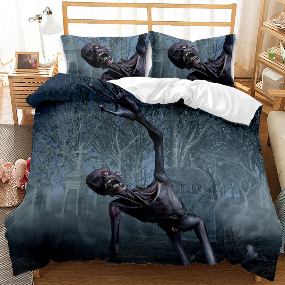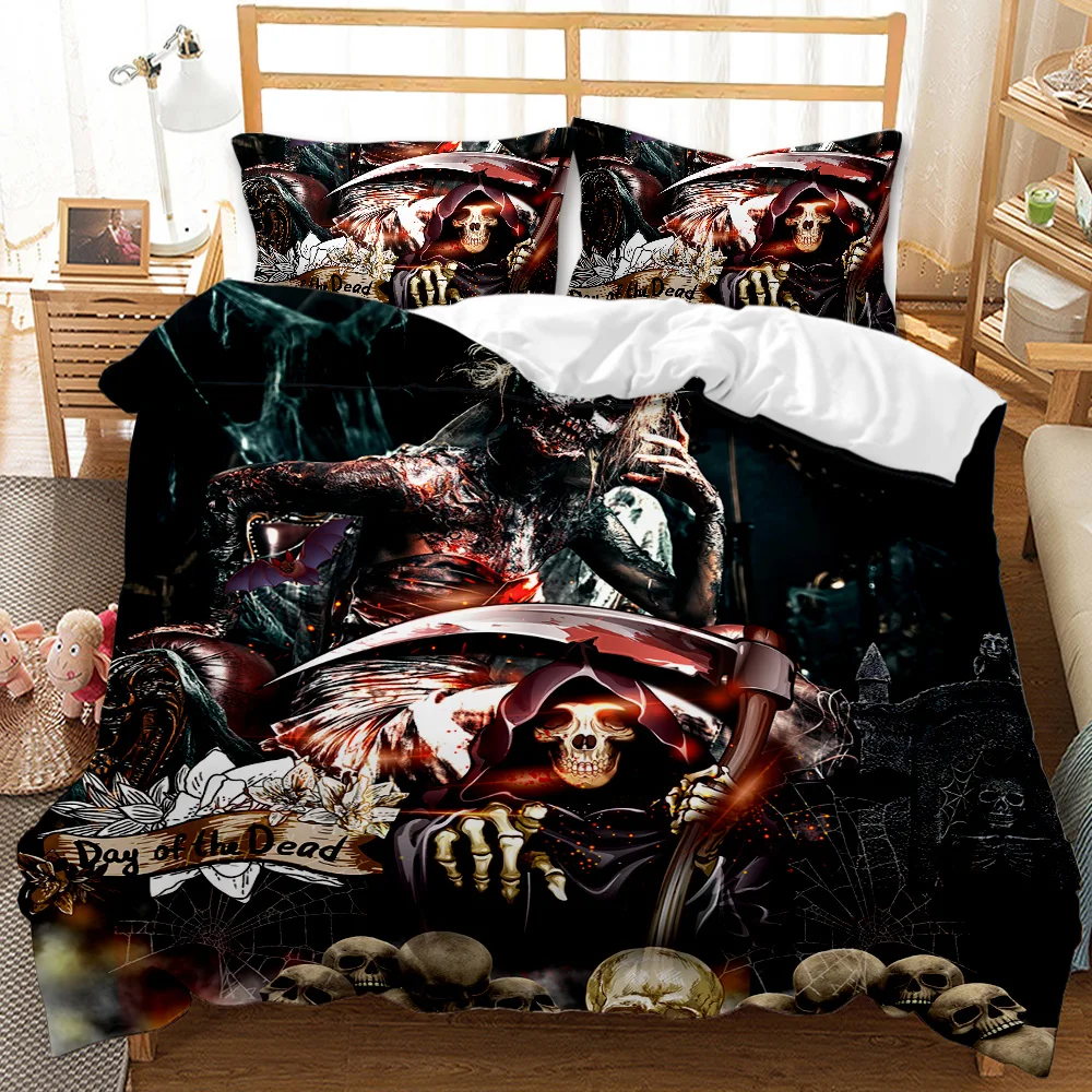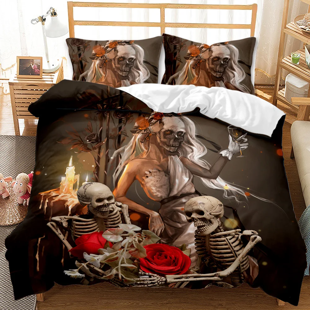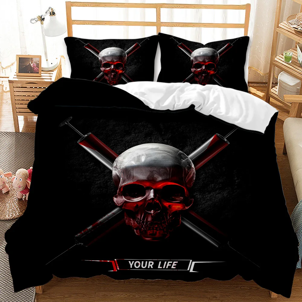 Набор постельного белья с 3D принтом черепа, 2/3 шт., черный пододеяльник, домашний текстиль, Одноместный двуспальный Королевский размер, одеяло, пододеяльник