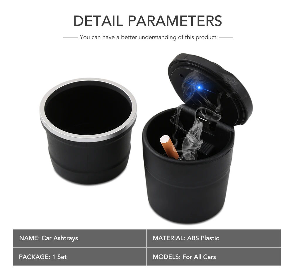 Изделие: пепельница Материал: ABS Цвет: черный Источник светильник светодиодный Применение: грузовик, автомобиль и т. д. Повод: дом, на открытом воздухе, путешествия и т. д. Количество: 1 шт. Особенность: Открытая пепельница автоматически всплывет. Автомобильные пепельницы можно размещать непосредственно на всех типах транспортных средств. Легкий и удобный в использовании, сделает ваш автомобиль более чистым. Маленький размер подходит для путешествий, кемпинга и улицы. Содержимое упаковки: 1 пепельница