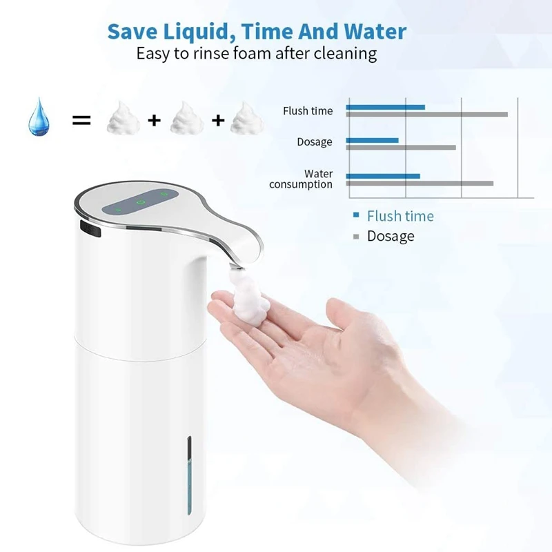 [450 мл/15 унций, супервместительный дозатор для мыла] емкость дозатора для пенного мыла KOOVON составляет 450 мл/15 унций. Благодаря емкости для заправки вам не нужно часто заправлять жидкость, тем самым экономя ваше время. Флаконы большого размера легче добавлять жидкость, а также можно вовремя заполнять жидкость через видимое окно. Также он имеет батарею большой емкости, одна бутылка используется для около 3 месяцев.
