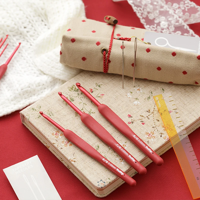 New Japan Tulip ETIMO Brand Red Crochet Hook Aluminum Resin Knitting Needles diy Original authentic Imported from Japan 1.8-5mm