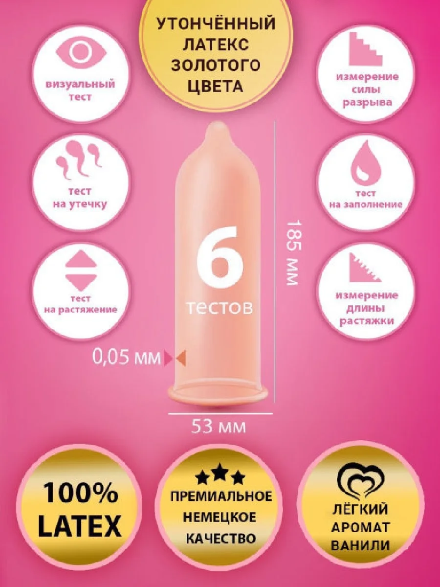 Презервативы от Masculan этой модели имеют золотистый цвет и ванильный аромат. Немецкий уровень качества позволяет гарантировать безопасность. Эти тонкие презервативы содержат на 20% больше смазки. Проведено электронное тестирование на наличие отверстий и неровностей на поверхности, проводится выборочная ручная проверка. Уровень контроля качества подтвержден независимой лабораторией Нидерландов (Голландия), швейцарской исследовательской компанией SGS. Презервативы со смазкой имеют номинальные размеры ширины 53 мм. и длины 185 мм. и обеспечивают обильную смазку и ультра высокую прочность, даже при длительном половом акте. ВОЗ рекомендует их, как лучшие презервативы немецкого качества. Эти презервативы цветные дарят более яркие ощущения, так как имеют толщину стенки 0,05 мм. Однако, при этом они не уступают в прочности при сильном натяжении и высокой интенсивности. Эти презервативы Masculan Ultra Gold 3 шт - это нежный утонченный латекс, создающий особый комфорт при использовании.
