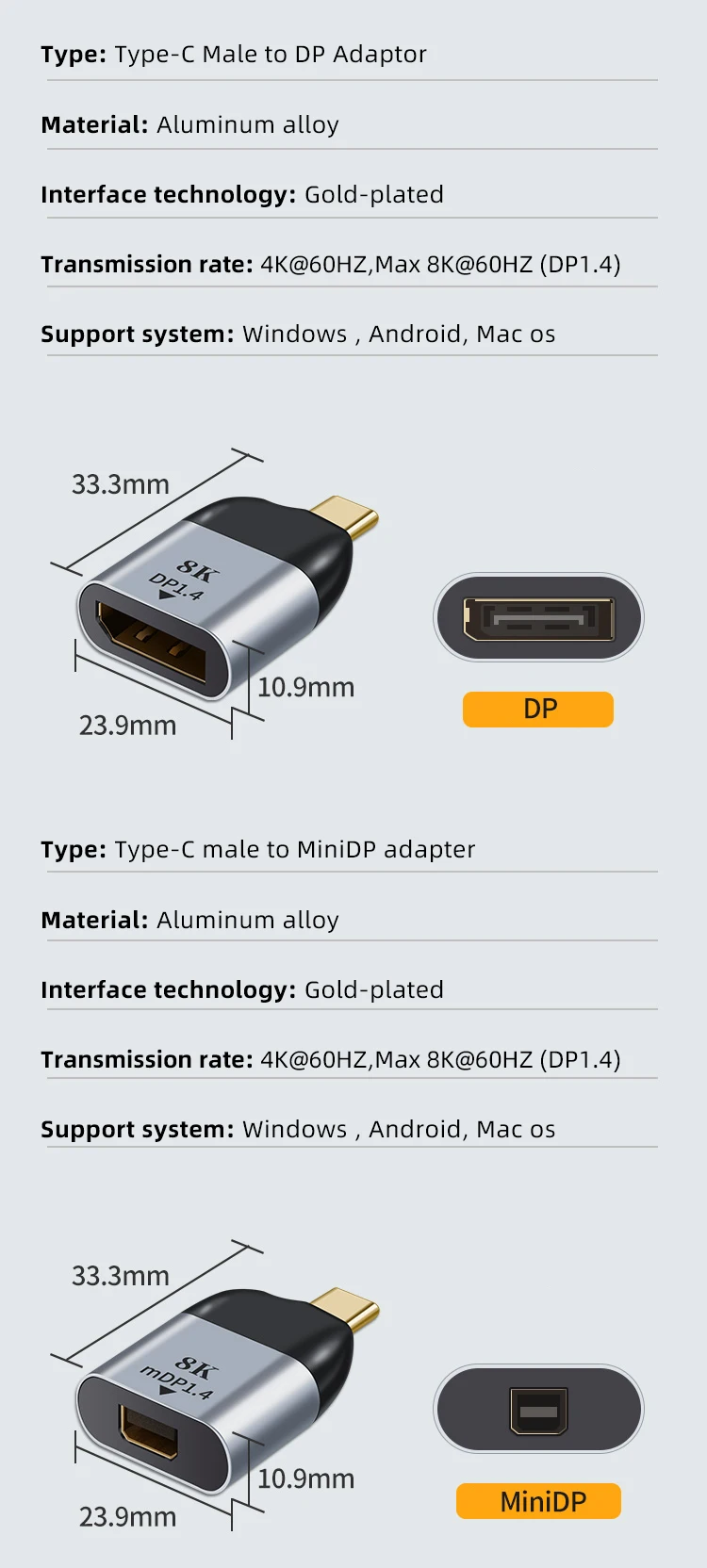 USB Type C к HDMI-совместимый 4K адаптер папа к женскому VGA DP 8K Кабельный разъем ноутбук видео конвертер адаптер для Macbook Pro