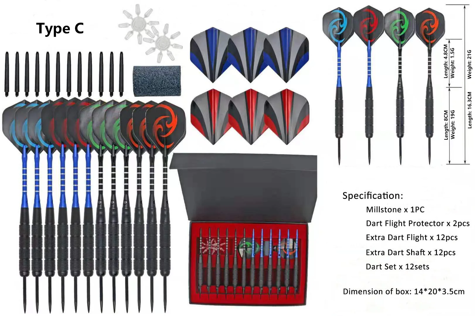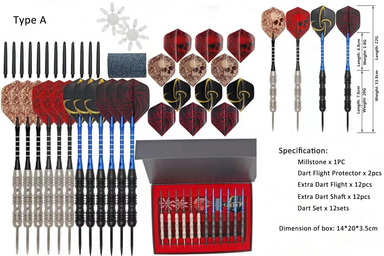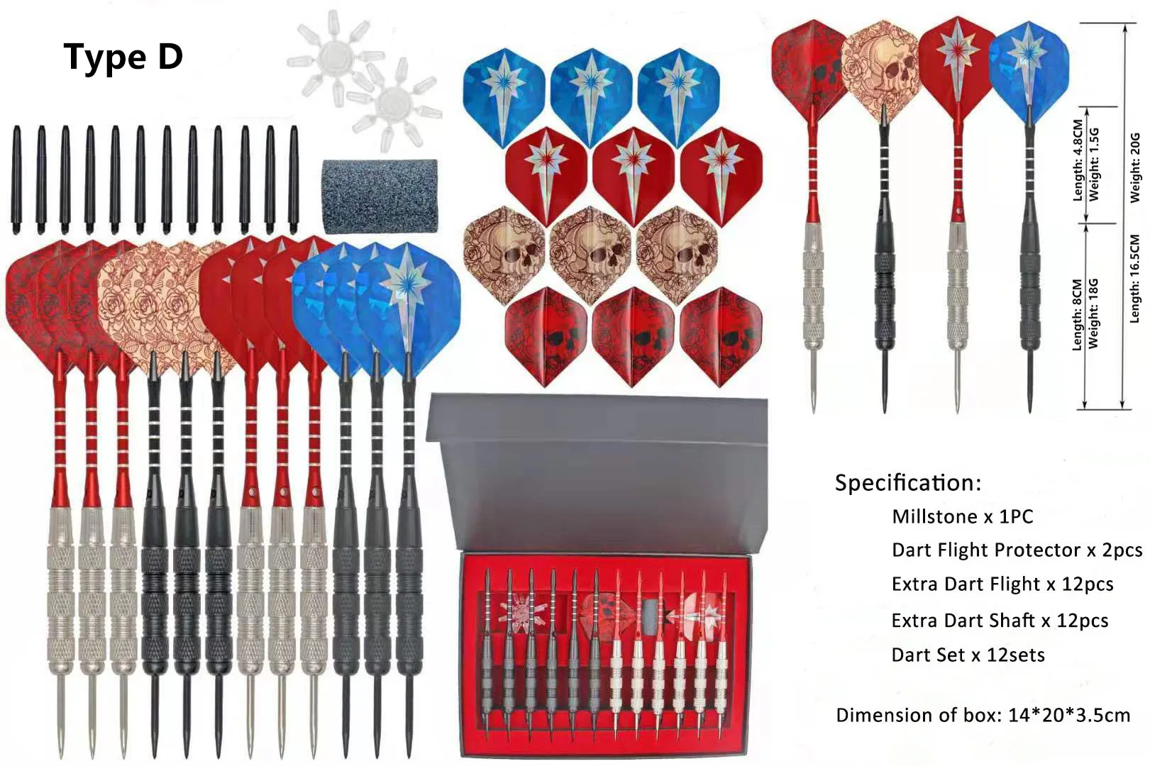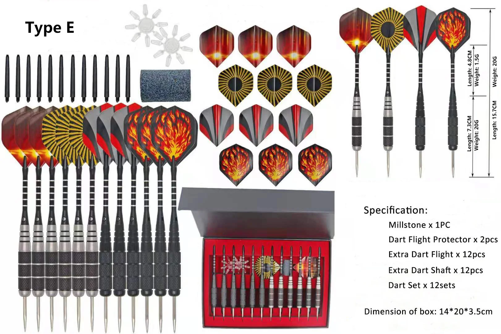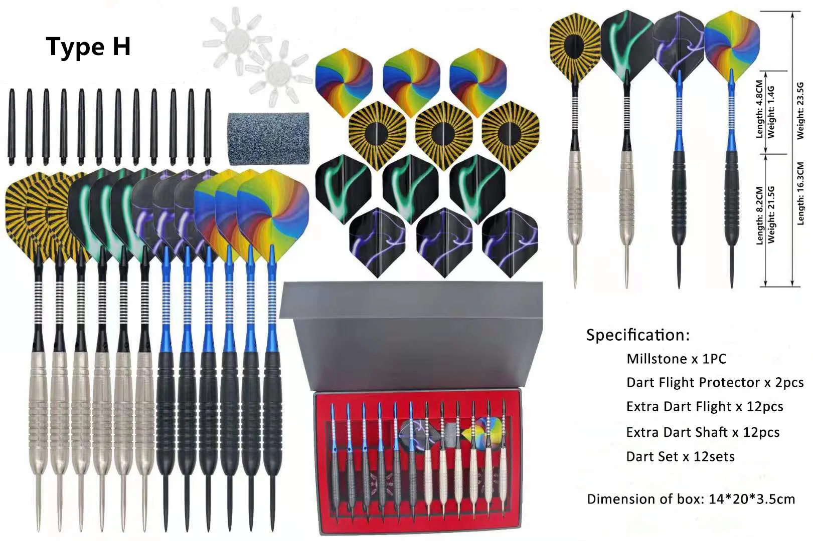 Дартс можно разобрать. Умелая игра для взрослых. Не детская игрушка или для использования детьми. Со стальными наконечниками, более стабильный и используется для многократного использования. Спецификация: Цвет и дизайн: как на картинке Millstone: 1 шт. Дротика протектор полета: 2 шт. Дополнительная Дротика полета: 12 шт. Дополнительная Дротика вала: 12 шт. Весь набор Дротика: 12 комплектов