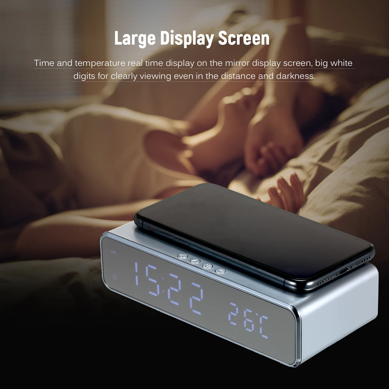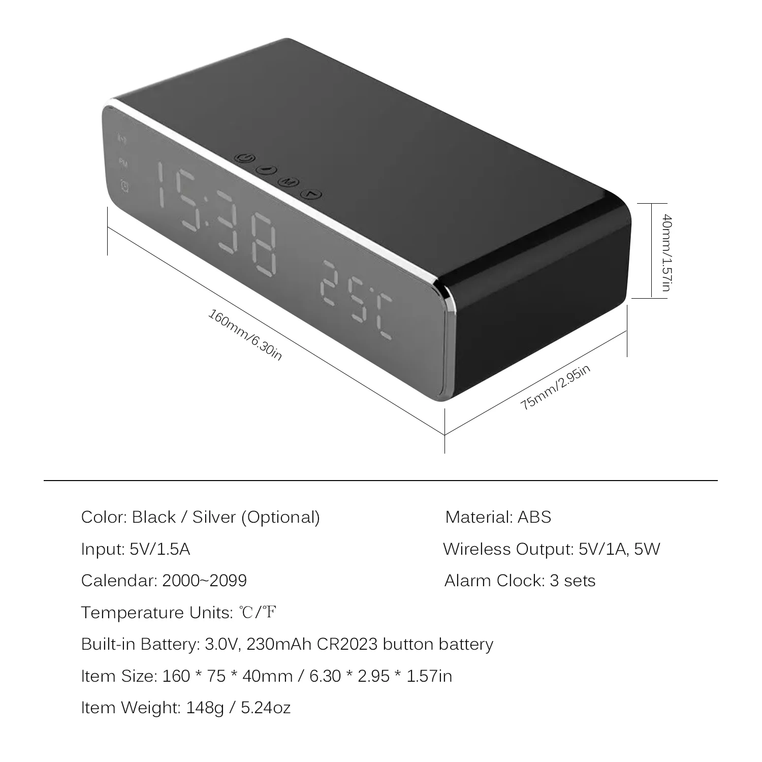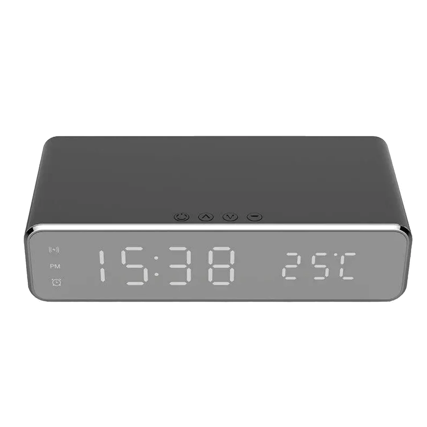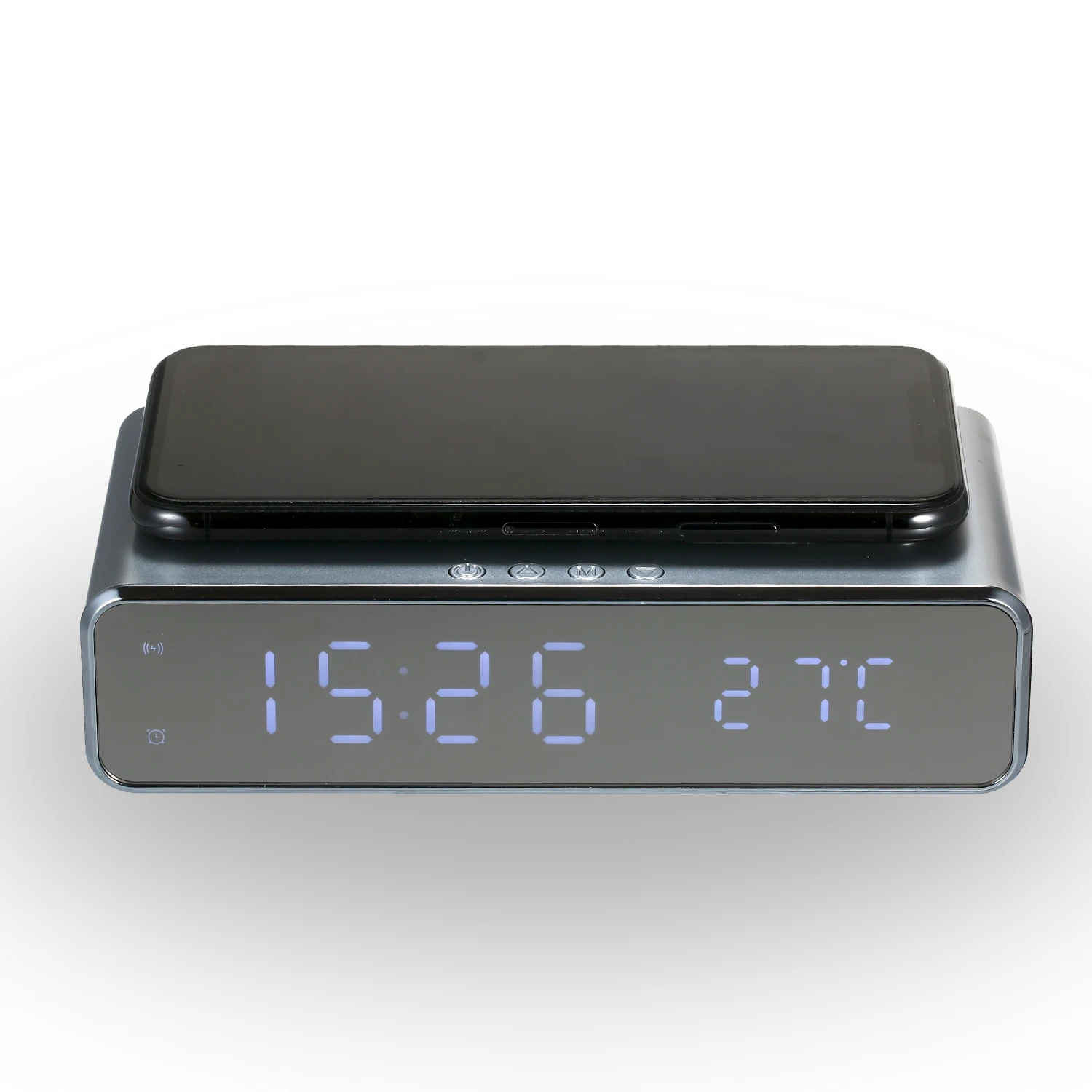 Многофункциональные часы: включая функции настольных часов, будильника, термометра и беспроводного зарядного устройства, все в одном устройстве.