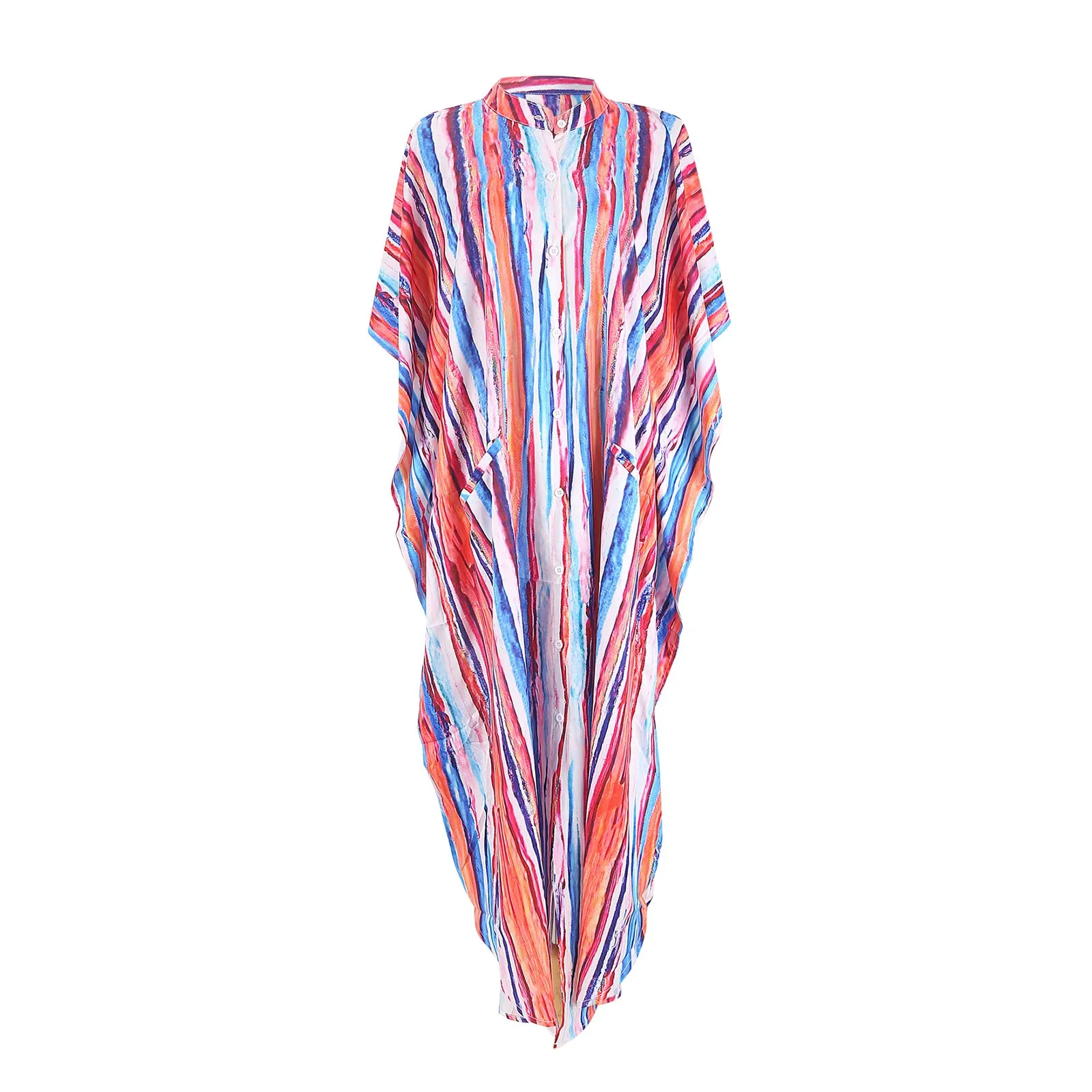 Женские пляжные топы С Разноцветными полосками, купальный кардиган, бикини, накидка