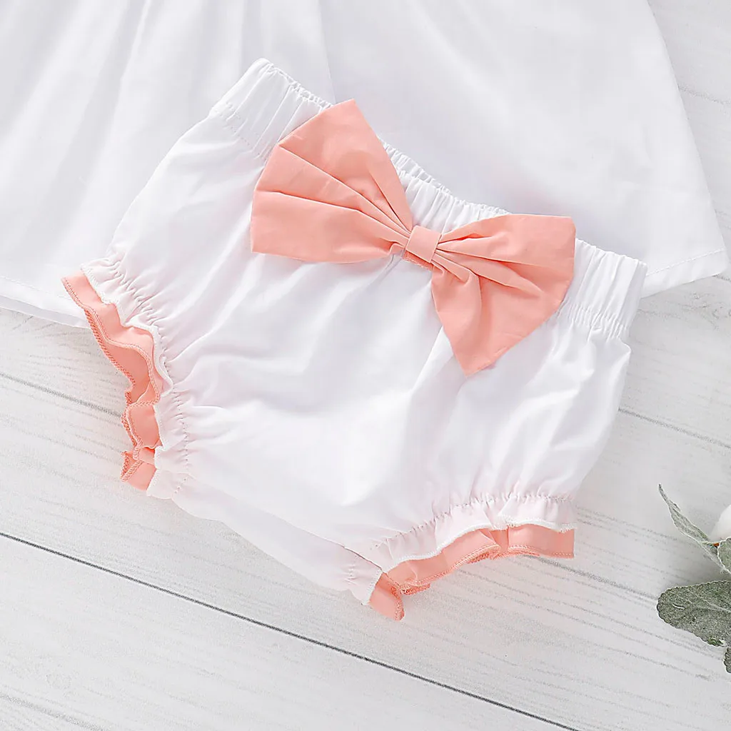 Детский, для новорожденных, для девочек; Детское кружевное платье; Топы + лук шорты PP + комплект с ободком
