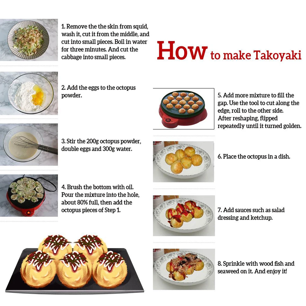 * 1. Тонкая работа. Легкая и компактная конструкция позволяет легко хранить эту машину Takoyaki, где бы вы ни пожелали.