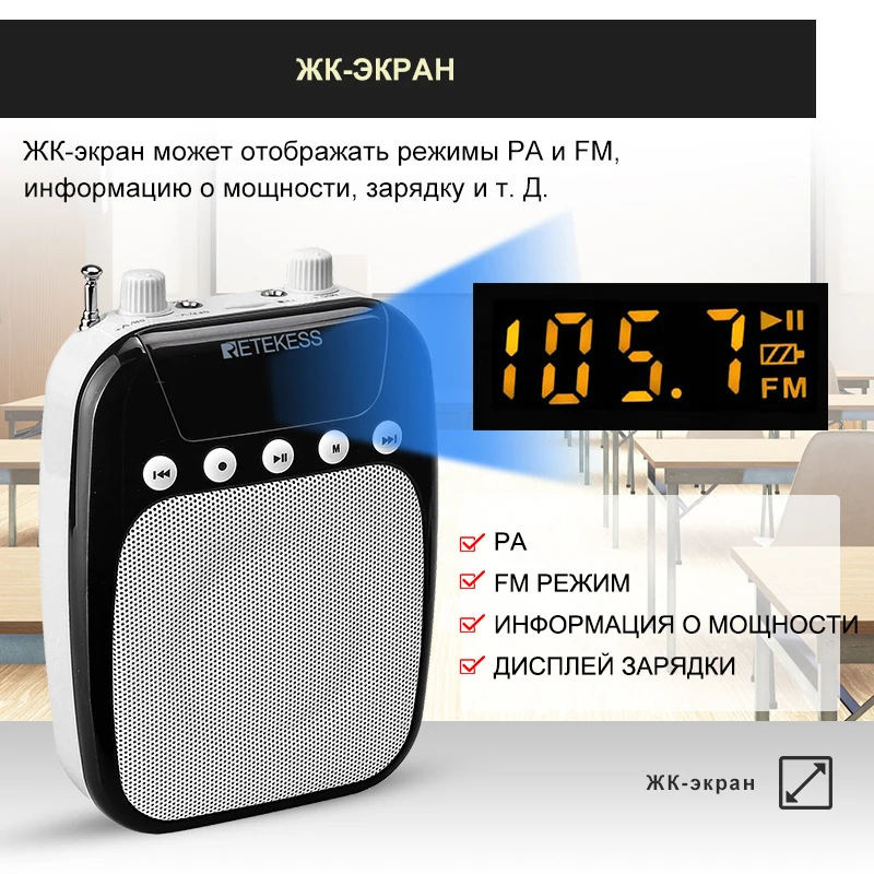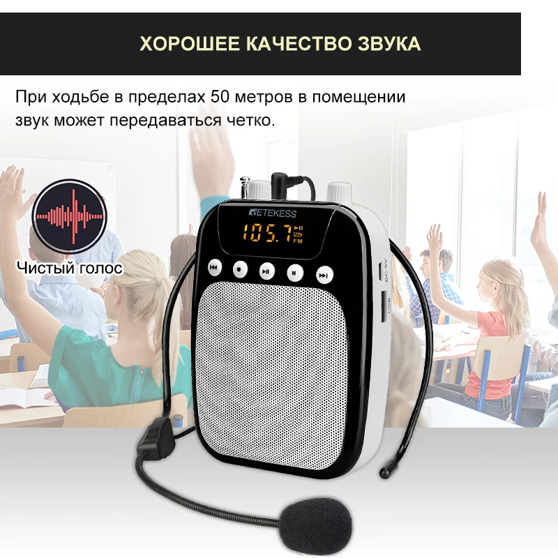 Портативный усилитель голоса RETEKESS TR623, микрофон для учителя, динамик, запись FM с MP3-плеером, fm-радио, tf-карта, USB