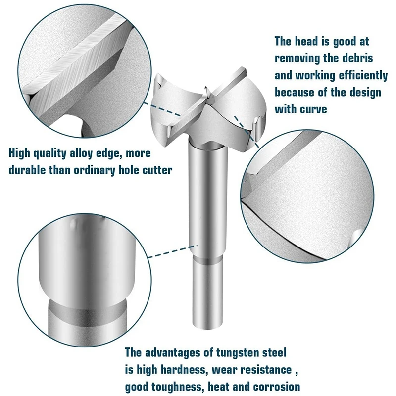 Идеально подходит для сверления точных плоских отверстий и создания арочного отверстия без сколов любой толщины древесины. Из сплава и с толстым краем, он может решить проблему разрыва старого ножа и значительно улучшает прочность лезвия.