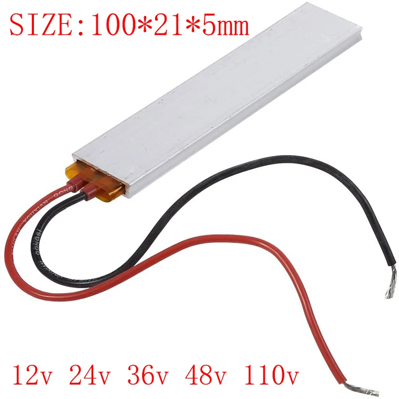 Спецификация: Название продукта: алюминиевый нагревательный элемент PTC Размер (прибл.) : 100*21*5 мм Напряжение: 12 В 24 в 36 в 48 в 110 В Температура: 60 ℃ 80 ℃ 100 ℃ 120 ℃ 150 ℃ 180 ℃ 200 ℃ 230 ℃ 270 ℃ Градусов Цельсия Материал тепла: Термистор Методы нагрева: теплопроводность Провод свинца: высокотемпературная линия Изоляция поверхности: Да Характеристика: Температура идентификации продукта относится к температуре окружающей среды 24 градусов, максимальной температуре продукта в воздухе в течение 1-2 минут и разности температур ± 10 градусов. Например: Продукт 220 градусов, максимальная температура воздуха 210 ~ 230 градусов (может не отображаться на 220 градусов), надеемся, что покупатели поймут это. PTC часть используется для нагрева воздуха или твердого тела. Это материал имеет характеристику, что он является постоянной температурой на поверхности. Потребляемая мощность нагревателя не фиксируется. Чем лучше рассеивание тепла, тем больше мощность. Преимущество: Безопасность, изоляция поверхности быстро нагревается, длительный срок службы, высокая температура, простота использования, высокая надежность. Применение: Нагреватель для воды, чашки, газа, применение в качестве выпрямителя для волос, йогурта, деувлажнения КИПиА, экструзии шоколада, кофемашины и компонентов предварительного нагрева. Примечание: 1. Допускается погрешность в 1-3 см из-за ручного измерения. Пожалуйста, убедитесь, что вы не возражаете, прежде чем сделать ставку. 2. В связи с разной конфигурацией разных мониторов изображение не отображает фактический цвет товара. Спасибо! Упаковка: 1x PTC нагревательный элемент